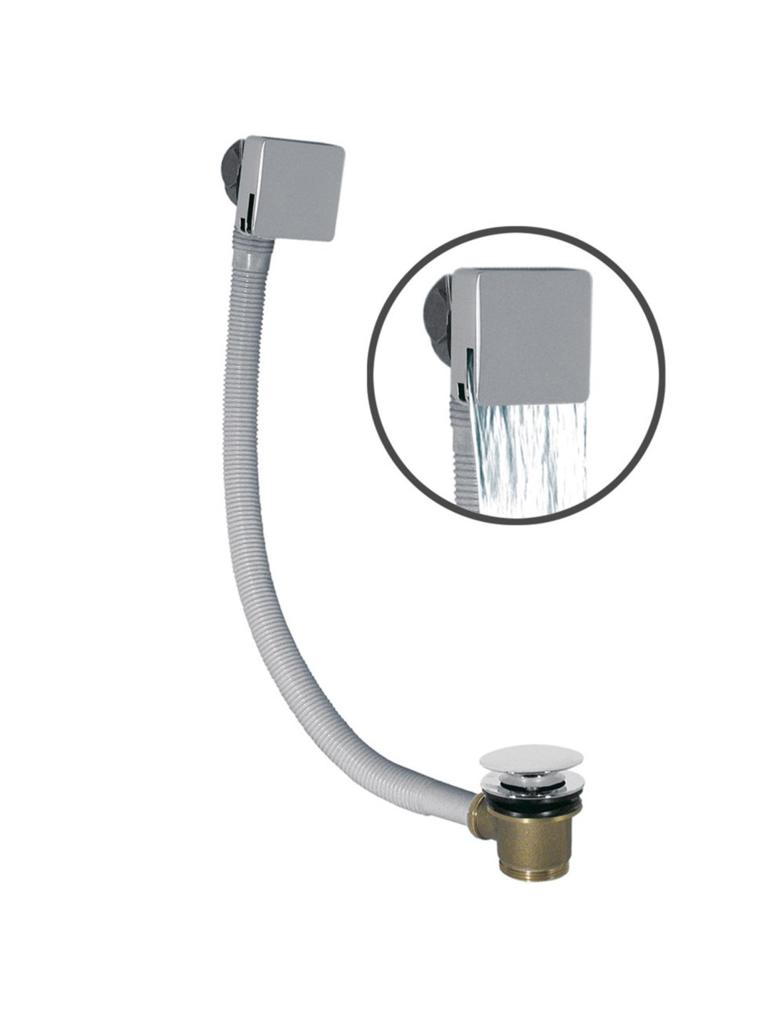 BONDE DE VIDAGE CARRÉE CLIC-CLAC AVCE SYSTEME DE REMPLISSAGE ET TROP-PLEIN POUR BAIGNOIRE TRES GRIFERIA