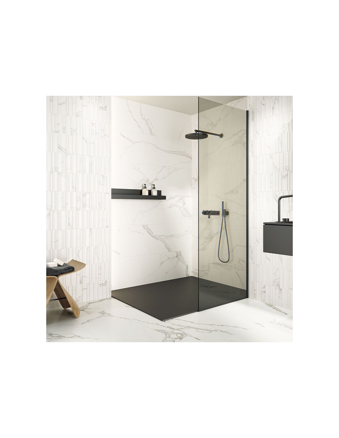 Une manière de donner un contact personnel et élégant à la douche et de l'enduire du m^mes matériel et couleur que le receveur.