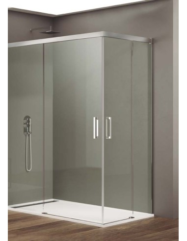 PAROI DE DOUCHE D'ANGLE AVEC 2 PORTES COULISSANTES EN VERRE TREMPÉ SECURITE COLLECTION-BASIC-GME