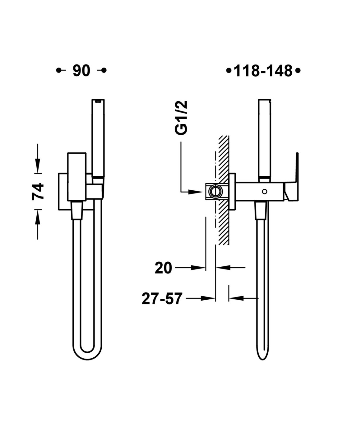 Support fixe pour la douchette à main pouvant être installé à gauche ou à droite