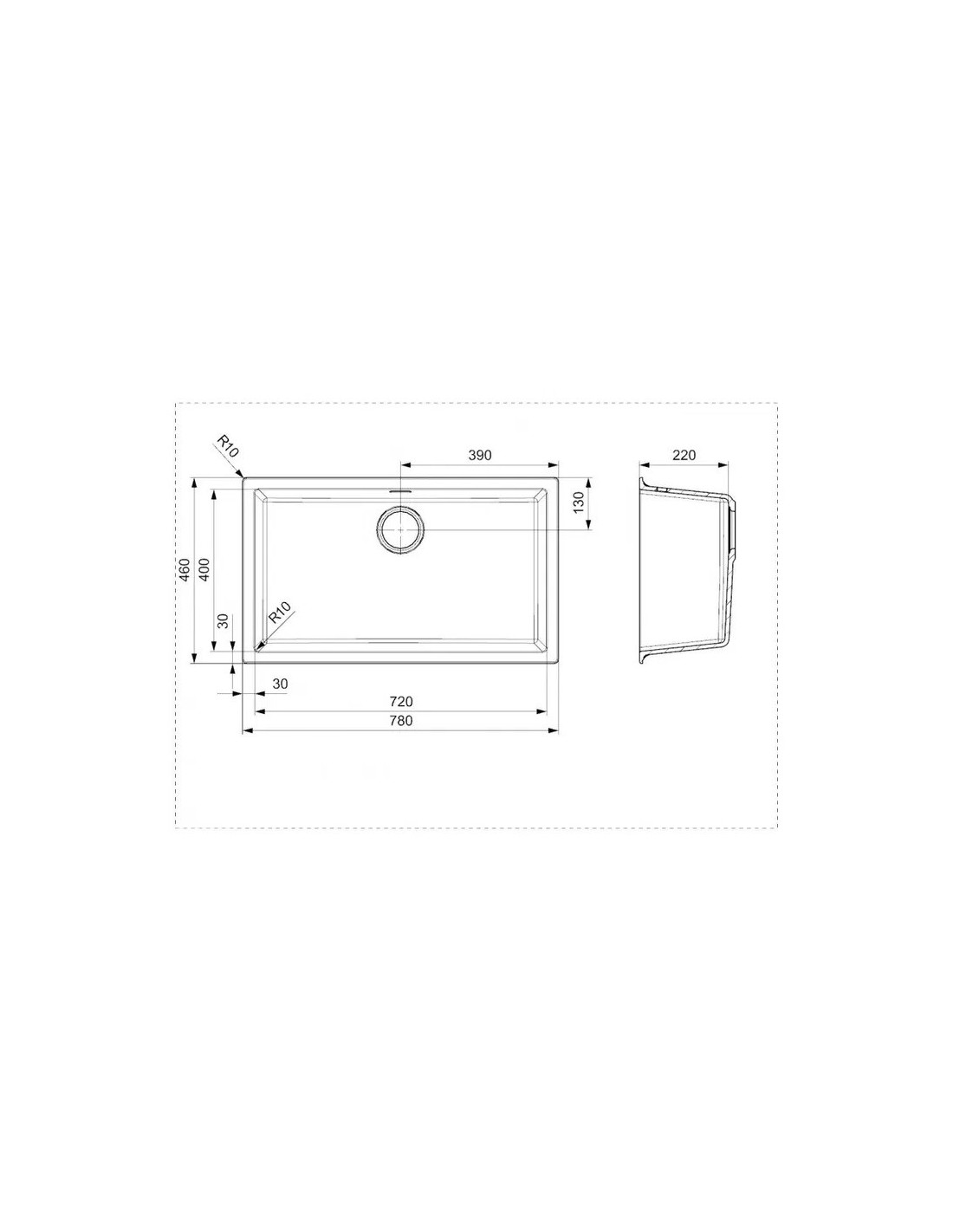 - Dimensions extérieures de l'évier : 78 cm de long x 46 cm de large x 22 cm de haut.