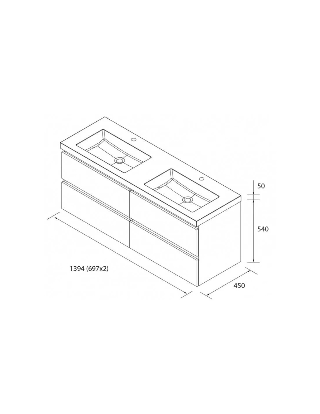 - Dimensions du plan vasque : 140,5 cm de long x 5 cm de haut x 46 cm de large.