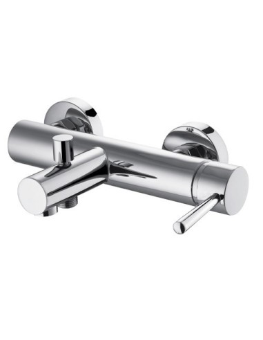 Sanitshop Ce produit qui appartient à la catégorie Robinet bain -douche (robinetterie pour la salle de bains, robinets pour bain ou baignoire-douche ): de rebord, avec bec bas , avec bec long , en laiton, une poignée, de style moderne, de couleur chromée, de corps rond.