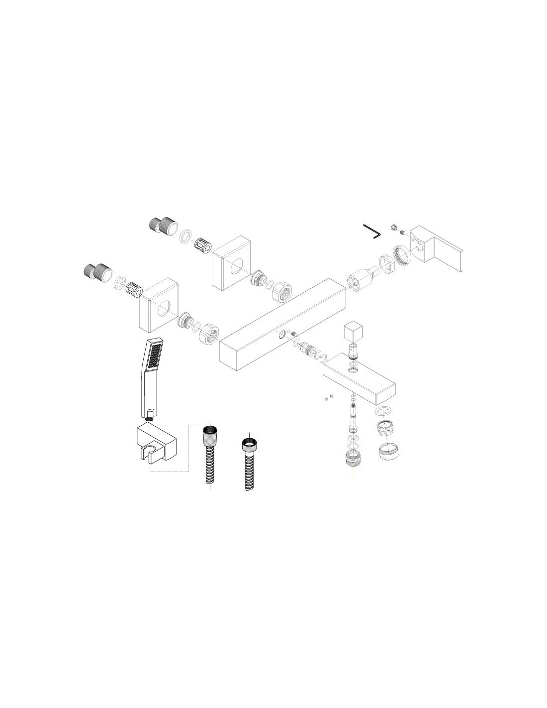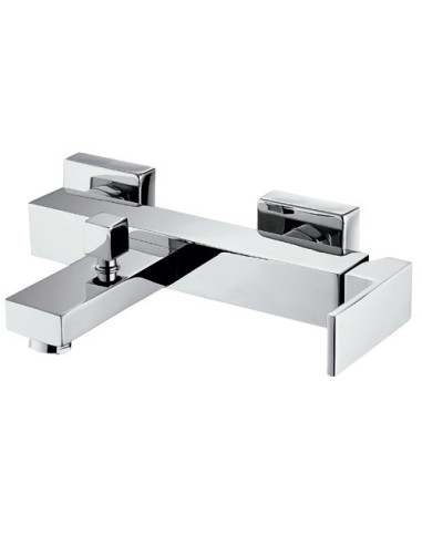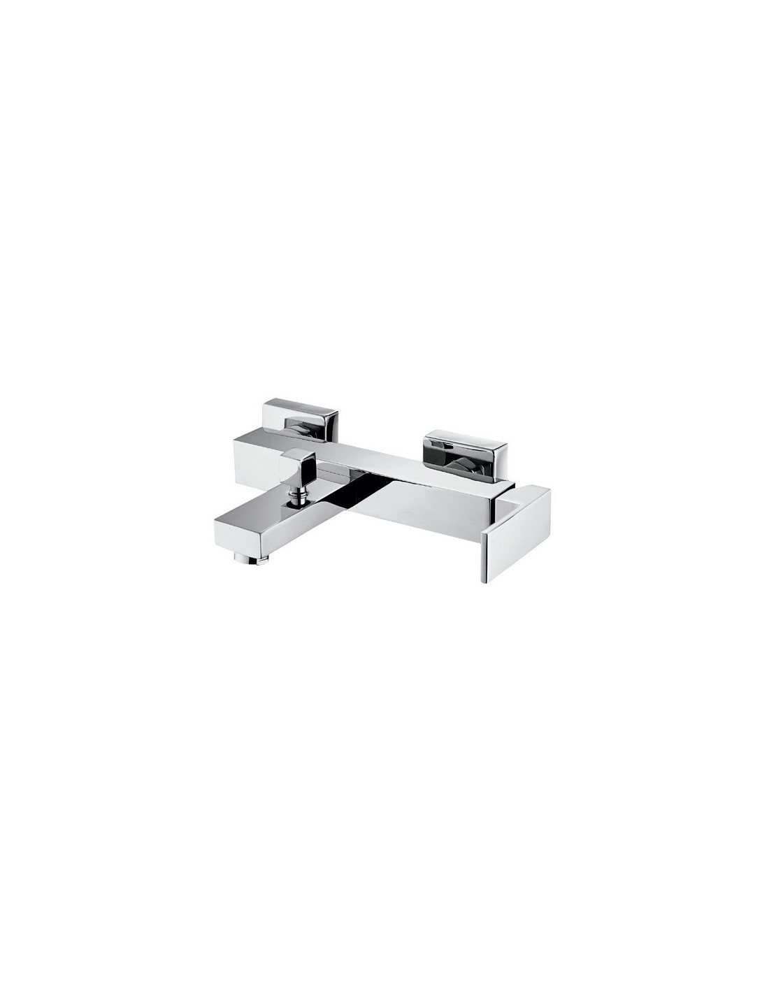 Sanitshop Ce produit  qui appartient à la catégorie Robinet bain -douche  (robinetterie pour la salle de bains, robinets pour bain ou baignoire-douche ): de rebord, avec bec bas , avec bec long  , en laiton, une poignée, de style moderne, de couleur chromée, de corps carrée.
