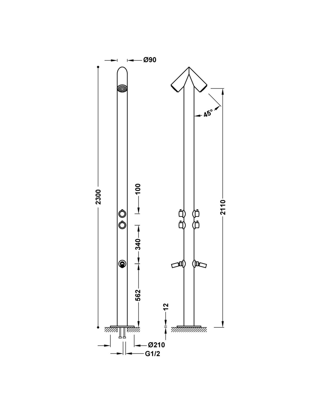 - Colonne de douche double pour jardin ou piscine avec traitement permettant d'empêcher son usure.