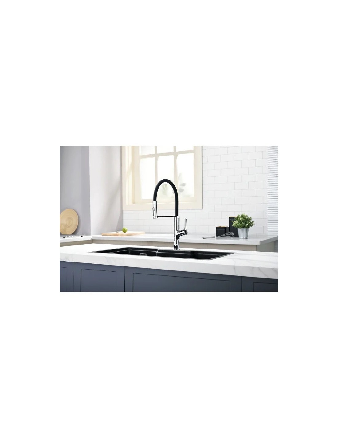 Mitigeur de cuisine extractible avec diffuseur à 2 fonctions et finition chrome et noir Liberty Sky Bath