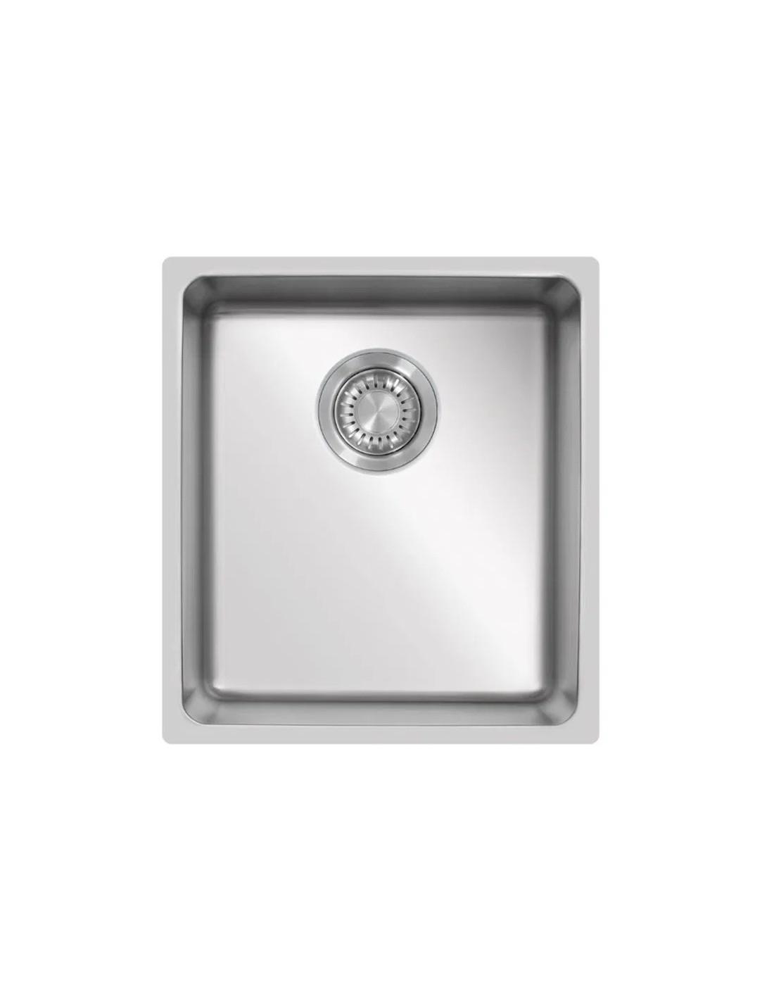 Sanitshop propose ce produit  qui appartient à la catégorie Éviers de cuisine: en acier inoxydable, sans trou de robinetterie, encastrés, encastrés sur le plan, encastrés sous le plan, étroits de 50 cm (centimètres) ou moins de long (petits, compacts), de couleur chromée, à 1 bac (cuve, vasque), de style moderne, de forme rectangulaire