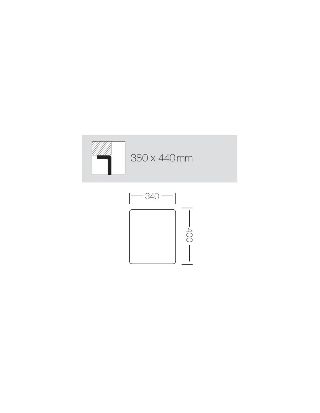 • À fleur de plan : 36,6 cm de largeur x 19 cm de hauteur x 42,6 cm de profondeur.