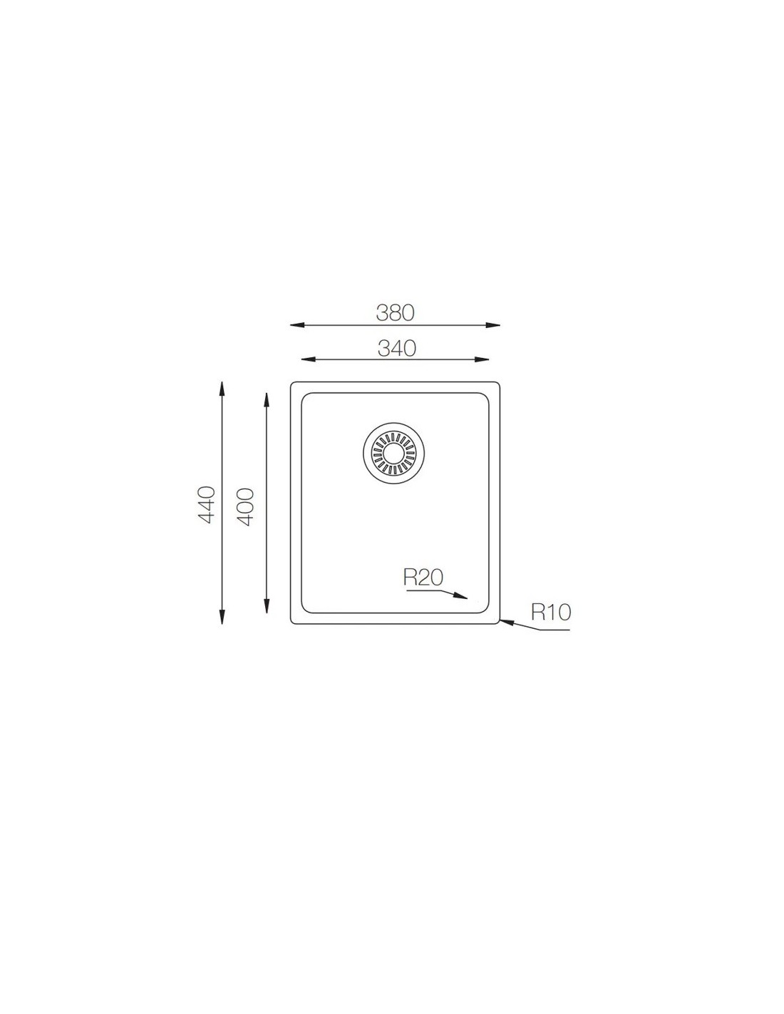 • Dimensions extérieures de l'évier : 38 cm de largeur x 20 cm de hauteur x 44 cm de profondeur.