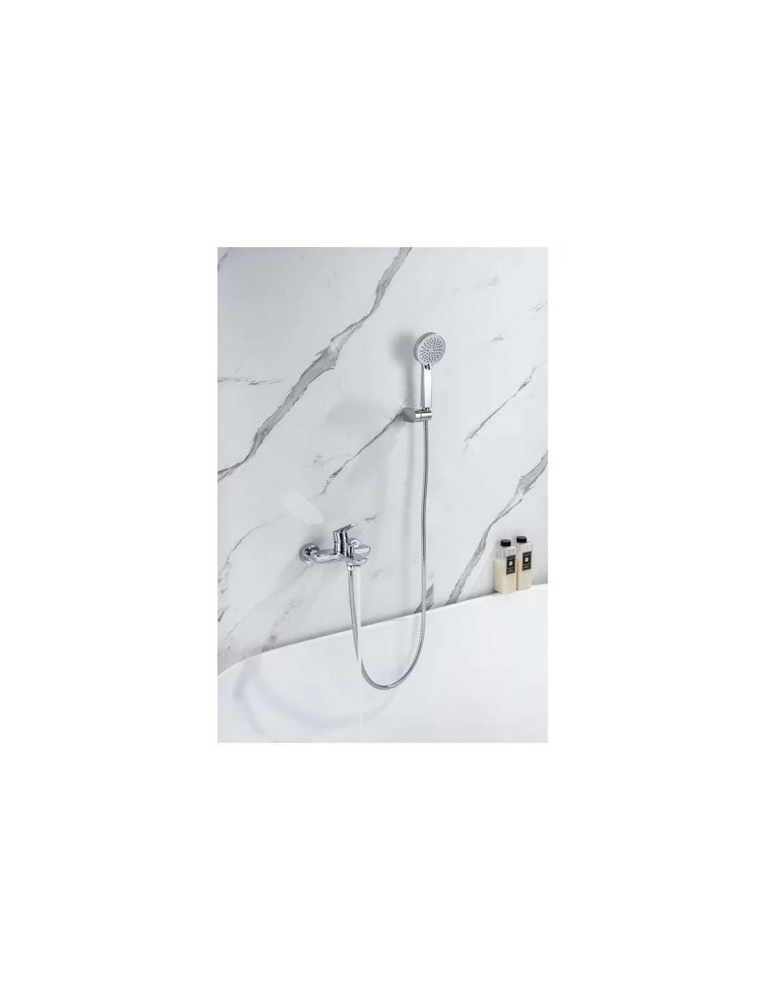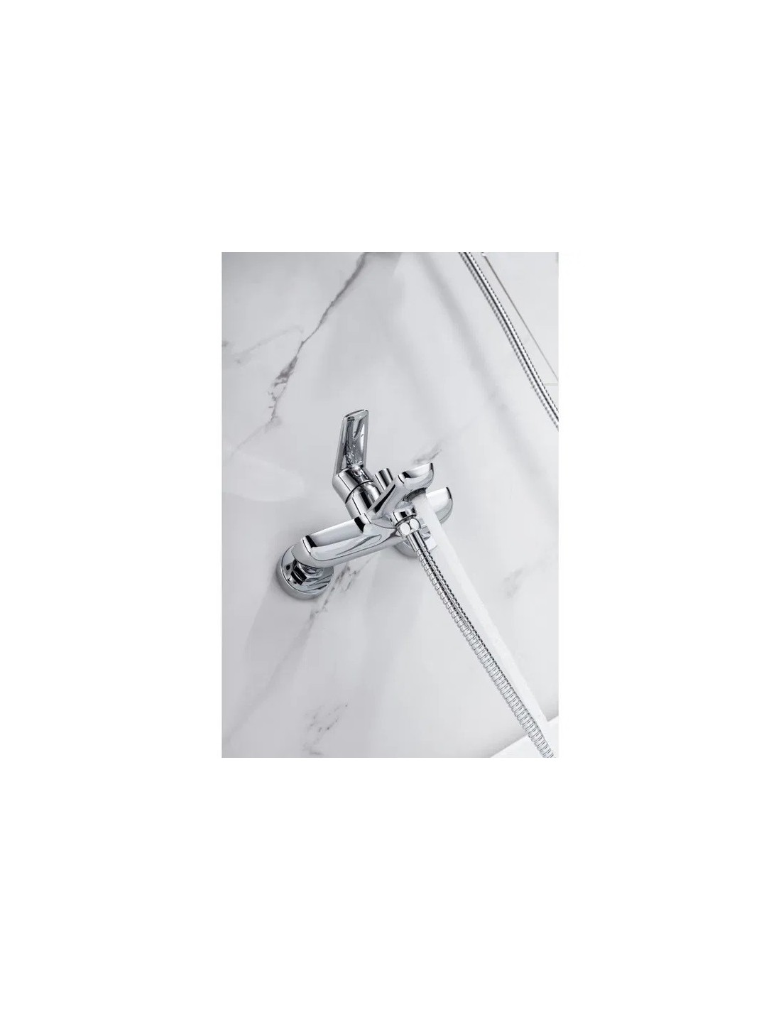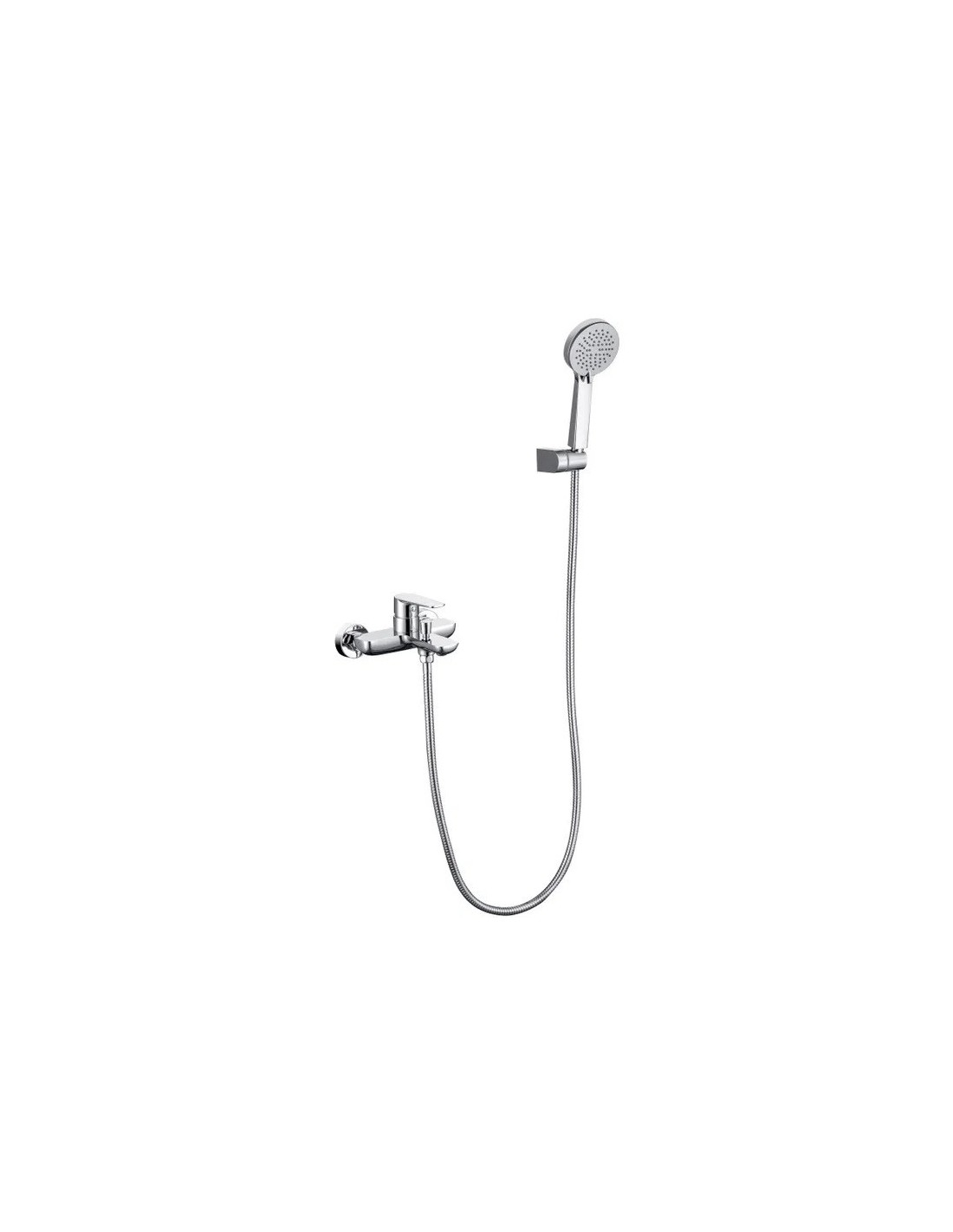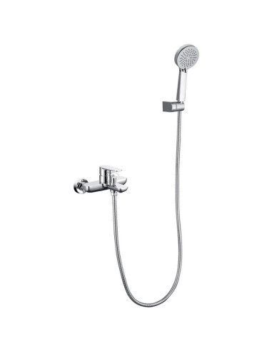 Sanitshop Ce produit qui appartient à la catégorie Robinet bain -douche (robinetterie pour la salle de bains, robinets pour bain ou baignoire-douche ): de rebord, avec bec bas , avec bec long , en laiton, une poignée, de style moderne, de couleur chromée, de corps rond.