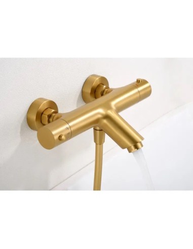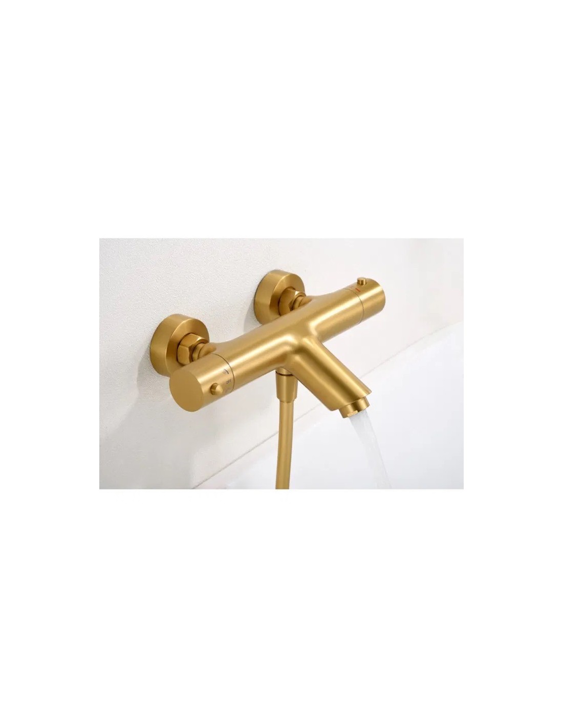 Sanitshop propose ce produit qui appartient à la catégorie Robinets pour baignoire (robinetterie pour baignoire, robinets avec bec de baignoire): avec ensemble de douche, en laiton, thermostatiques, muraux, de style moderne, de couleur or (or rose), de corps rond.