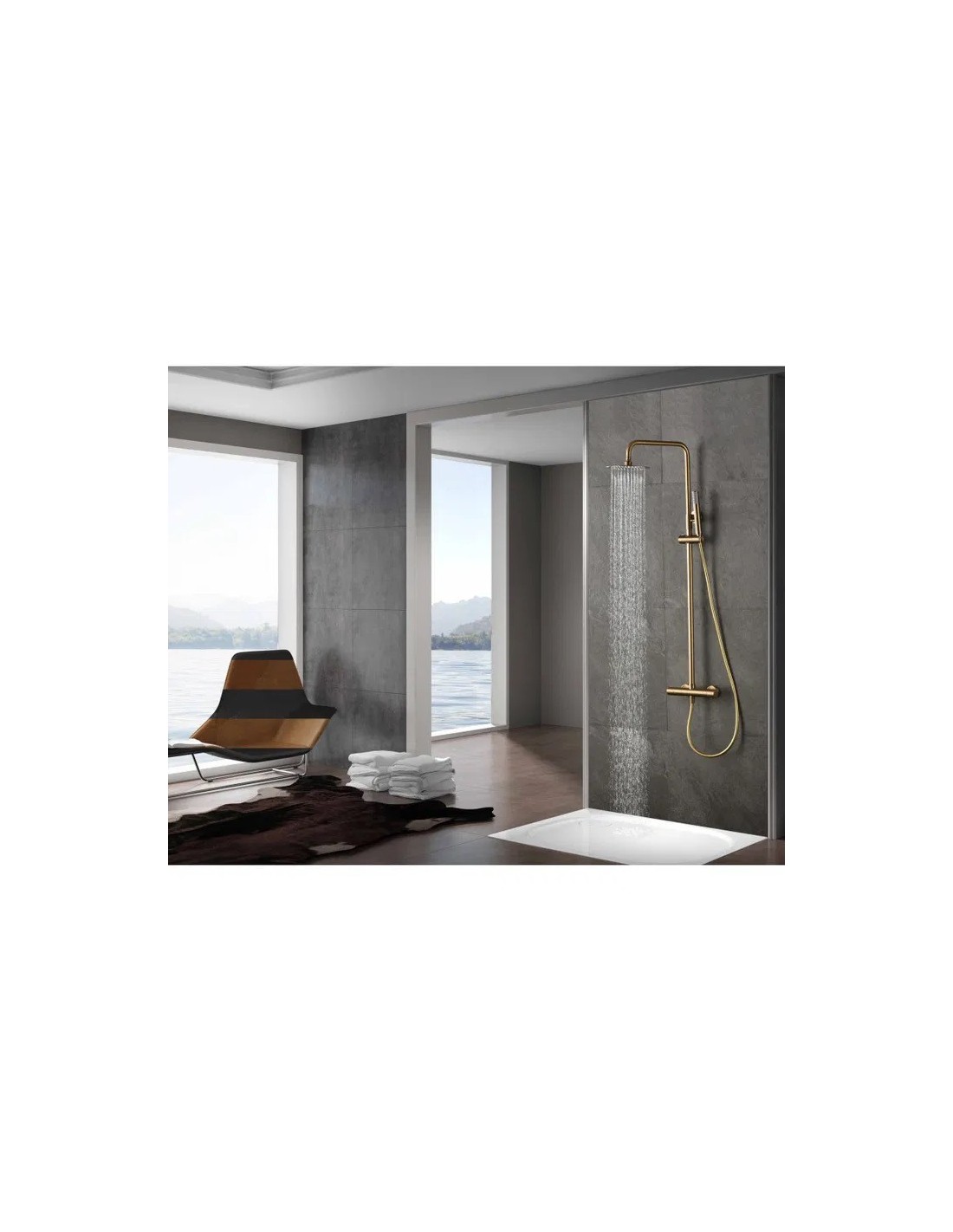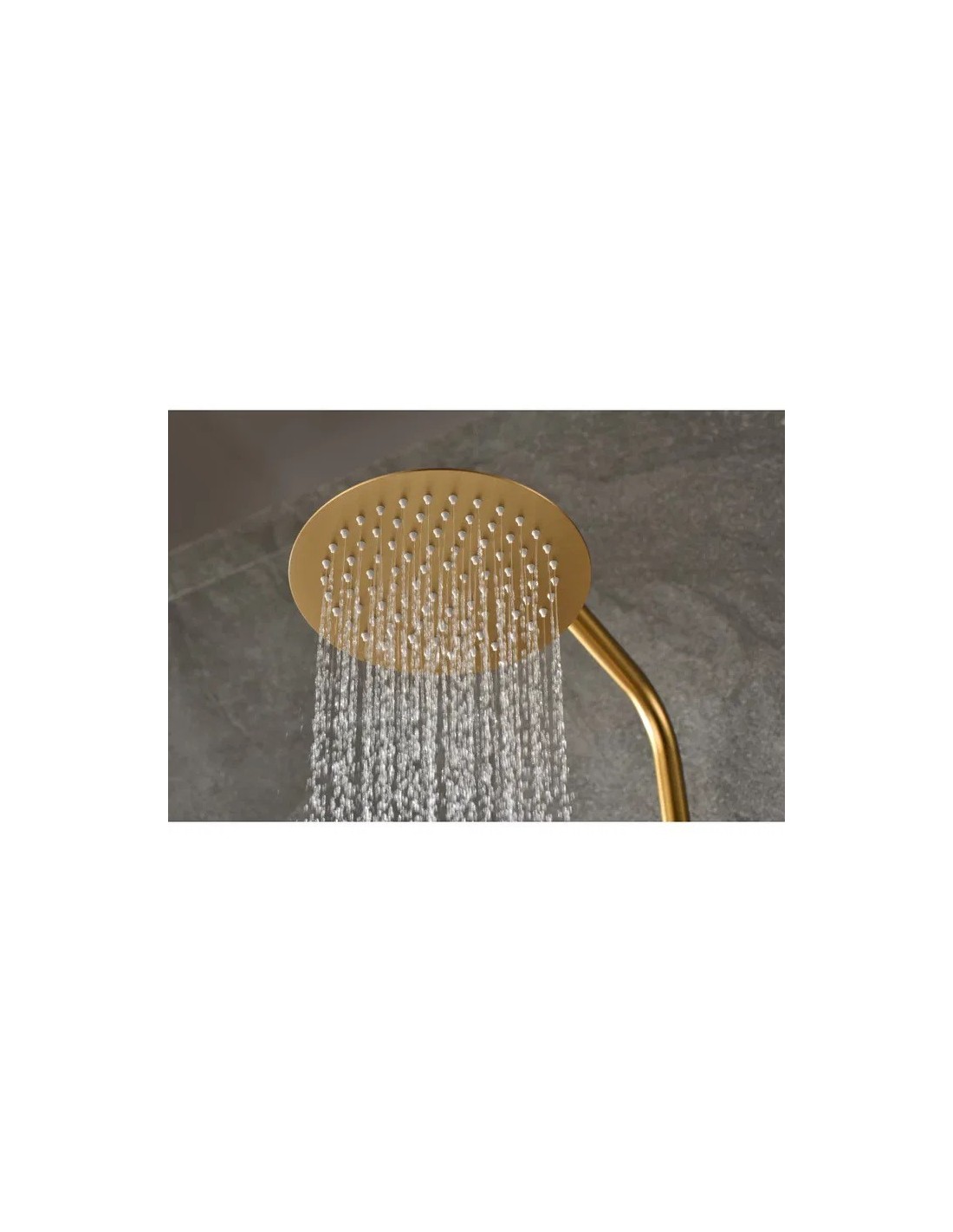- Pomme haute et colonne de douche fabriquées en acier inoxydable S.304, avec finition PVD de couleur or brossé.