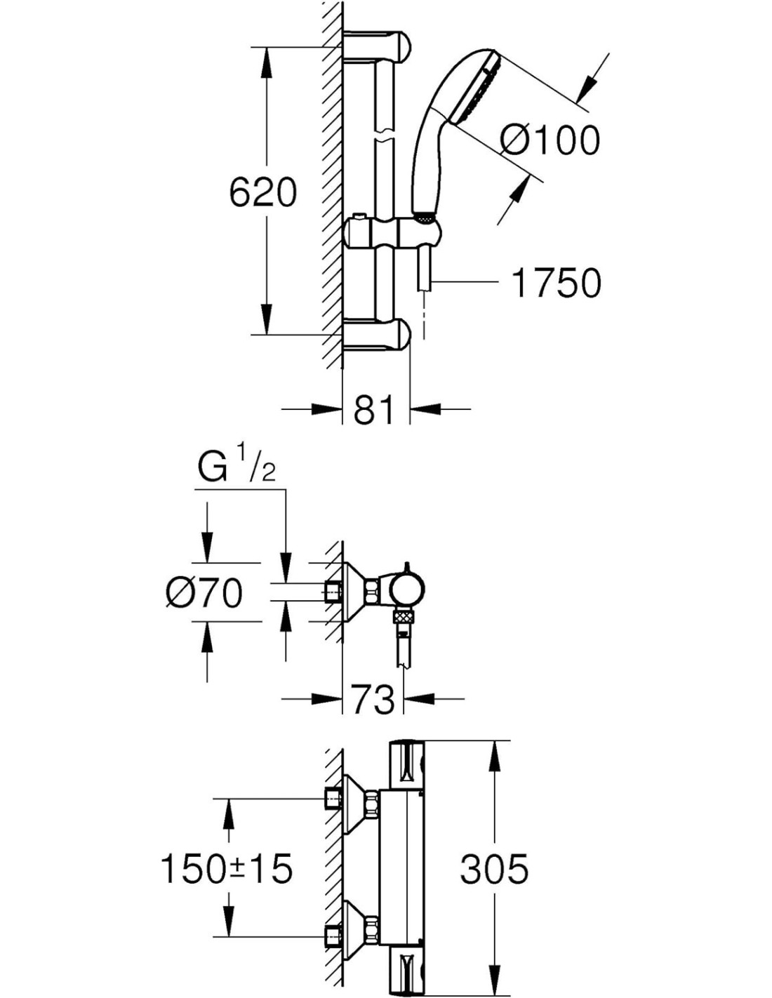 - Mitigeur thermostatique douche Grohtherm 800 (34558000)
