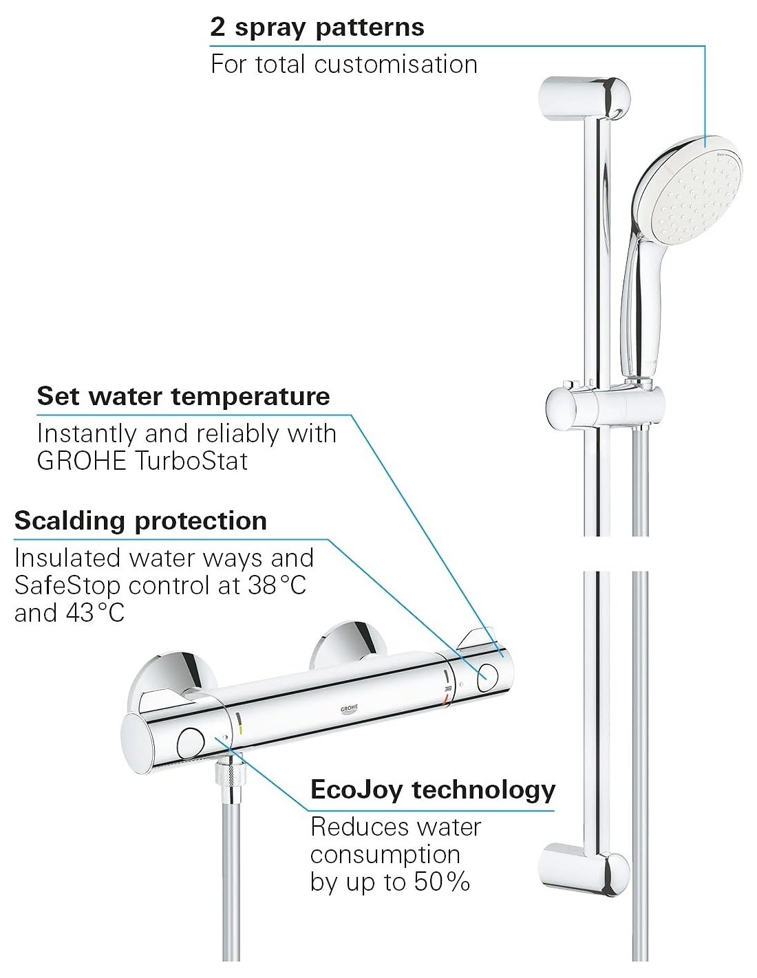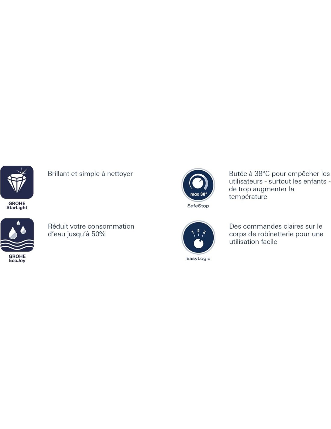 - GROHE SafeStop Plus butée à 38°C + limiteur de température intégré à 50°C max