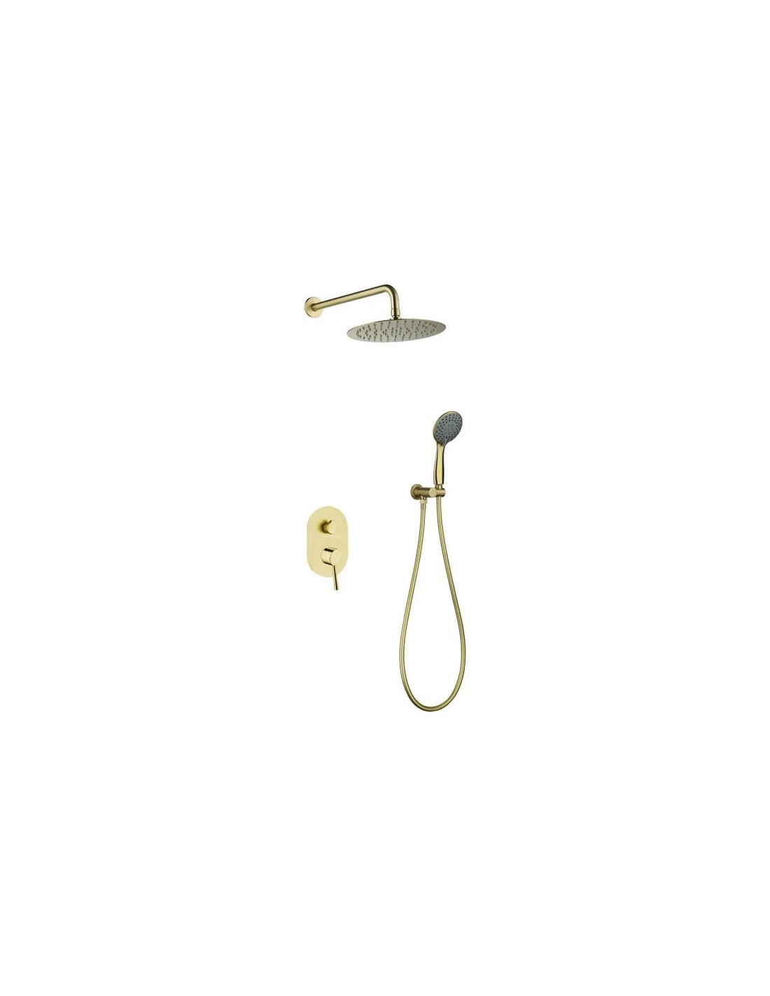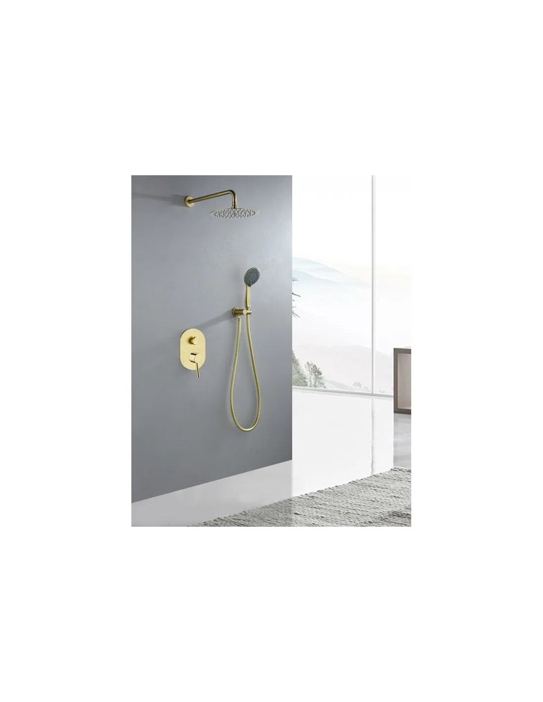Sanitshop propose ce produit  qui appartient à la catégorie Robinets de douche (robinetterie pour douche): avec kit de douche, en laiton, de 2 voies, mitigeurs (une poignée), de style moderne, de couleur or (brossé , chrome, noir mat ), à encastrer mural.