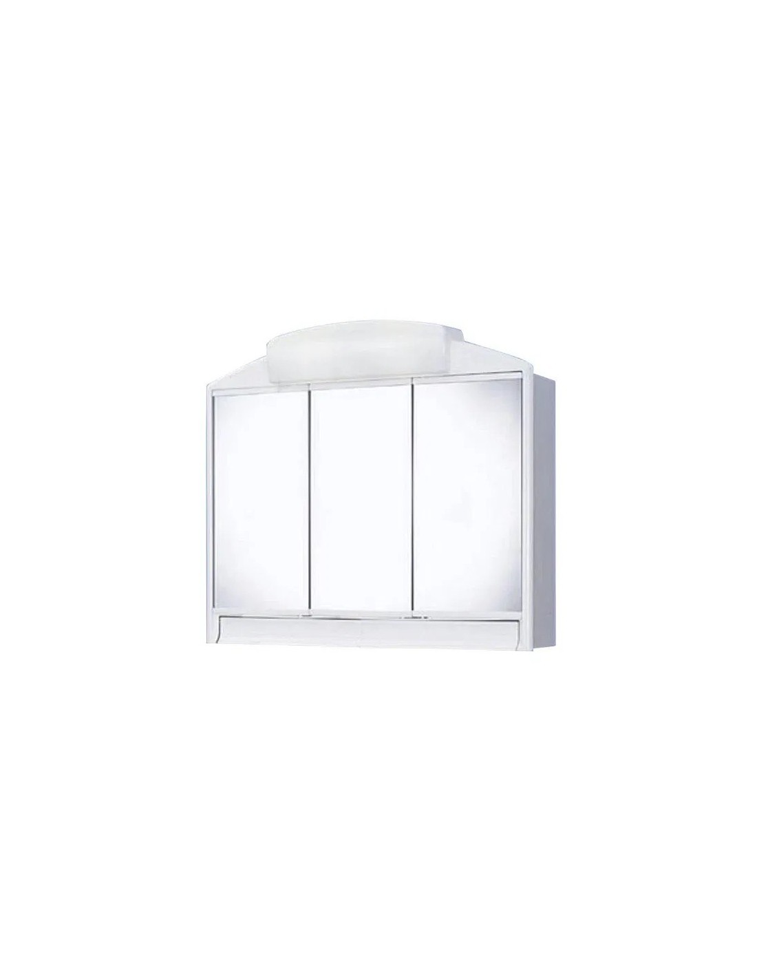 Sanitshop Ce produit qui appartient à la catégorie Miroirs avec un meuble intégré (miroir avec armoire, armoire de toilette de salle de bains): avec éclairage (avec LED), avec 3 portes, de 60 cm ou moins (étroits, petits) de largeur, de 60 cm (centimètres) ou moins de haut, style classique vintage, rétro, antique, traditionnel, de couleur blanche.