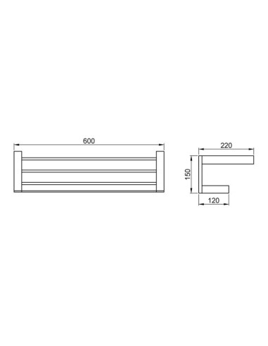 PORTE SERVIETTE AVCE ÉTAGÈRE ,RAIL INFÉRIEUR DIM 60CM AVEC FIXATION EN ALUMINIUM COLLECTION-CAPRI-NOFER