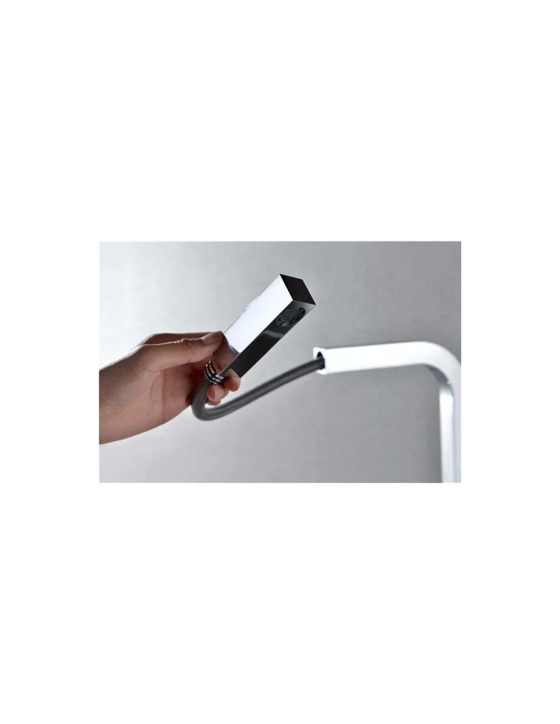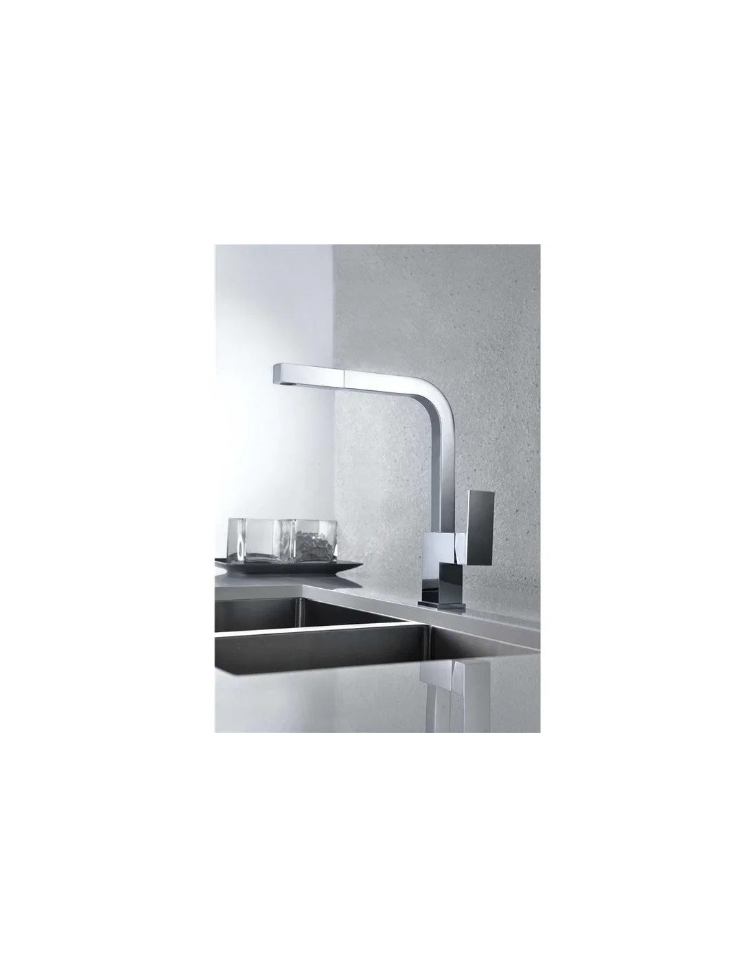 Sanitshop propose Ce produit qui appartient à la catégorie Robinetterie de cuisine (robinets pour éviers): éco-efficace (avec régulateur de débit, avec arrêt automatique pour économiser l\'eau), avec douchette (avec pommeau de douche), avec bec amovible (extensible, avec flexible), avec bec pivotant, de couleur chromée, de rebord, à bec haut , mitigeur (monobloc), en laiton, de style moderne.