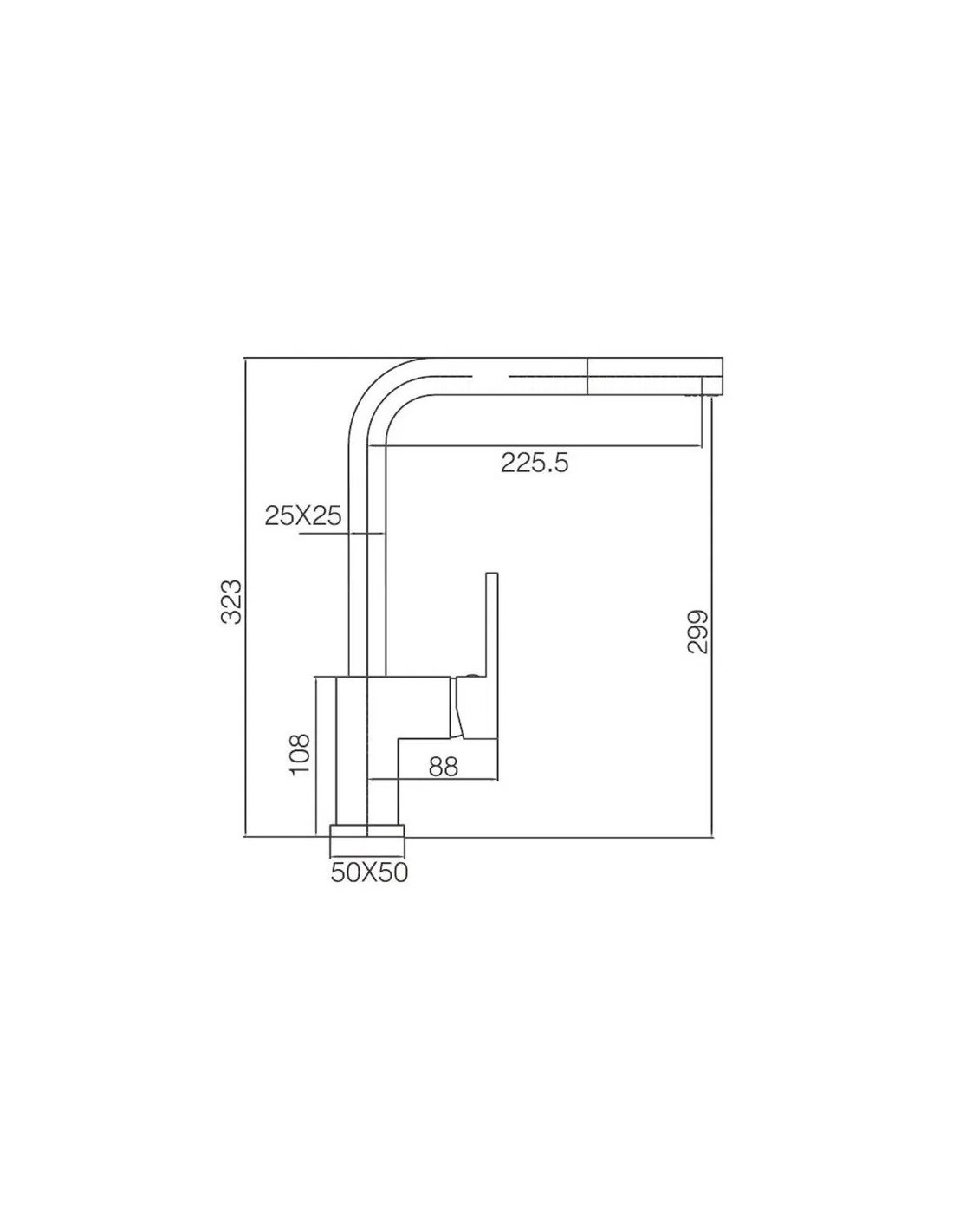 - Dimensions du robinet : 23,5 cm de long x 32,3 cm de haut. Bec carré de 2,5 cm de côté et base du robinet de 5 cm.