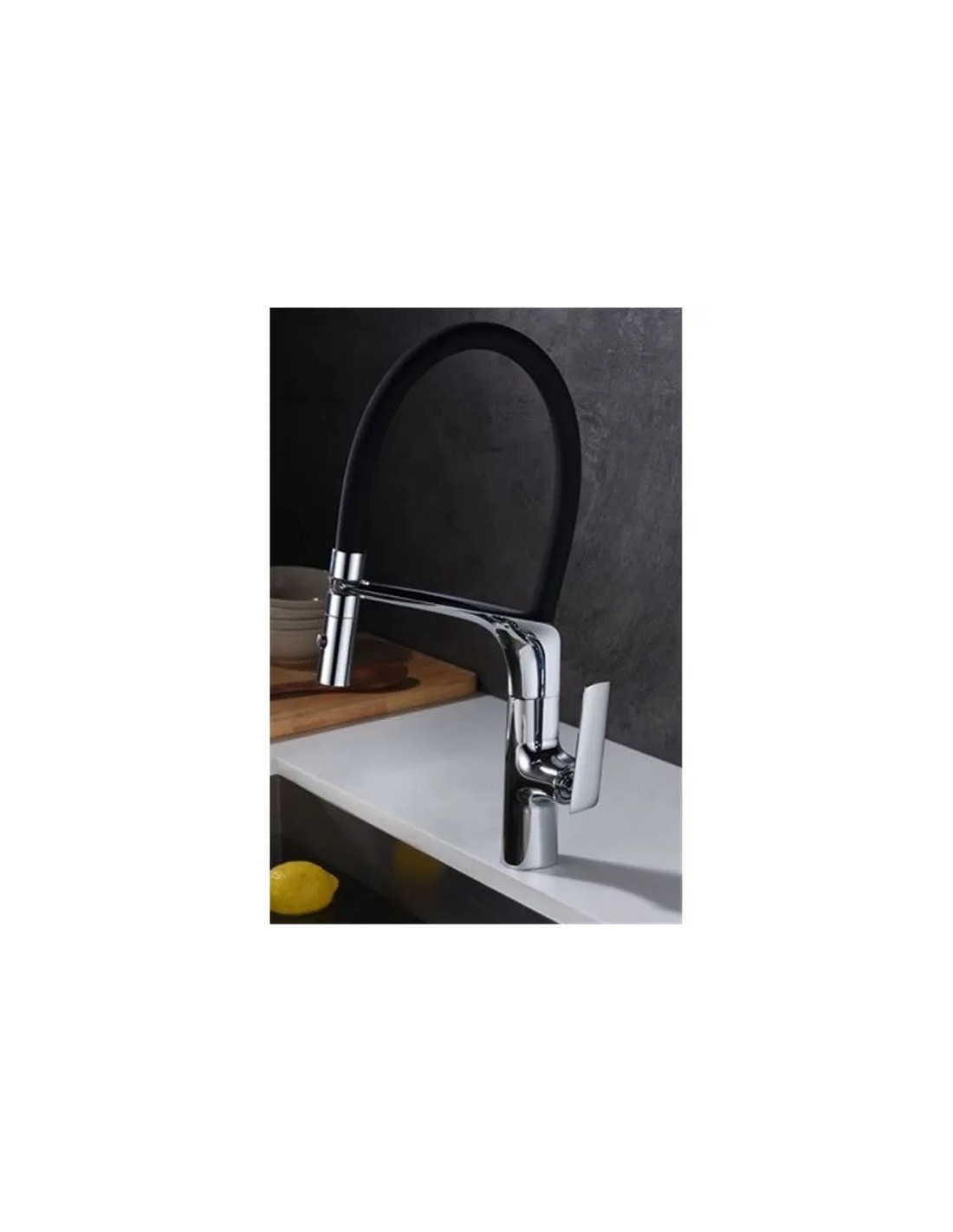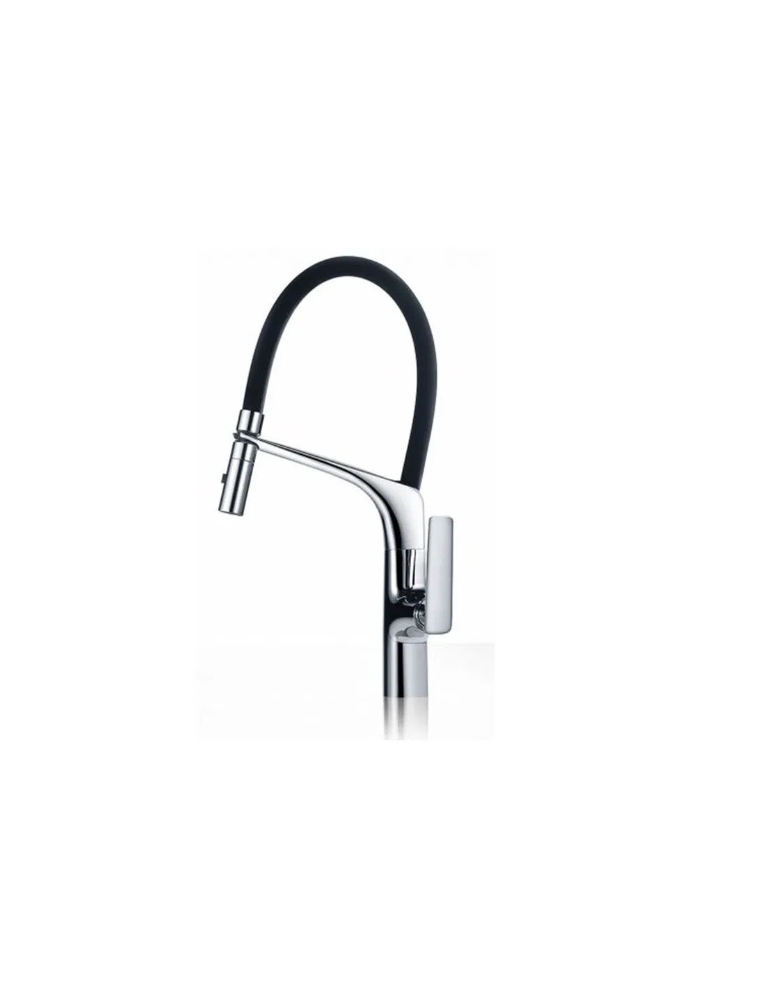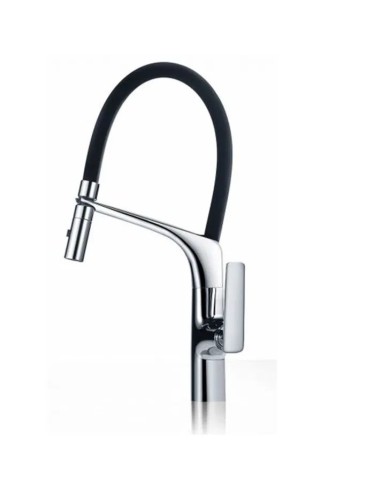 Sanitshop propose Ce produit qui appartient à la catégorie Robinetterie de cuisine (robinets pour éviers): éco-efficace (avec régulateur de débit, avec arrêt automatique pour économiser l\'eau), avec douchette (avec pommeau de douche), avec bec amovible (extensible, avec flexible), de couleur chromée, de couleur noire, de rebord, à bec haut , mitigeur (monobloc), en laiton, de style moderne.