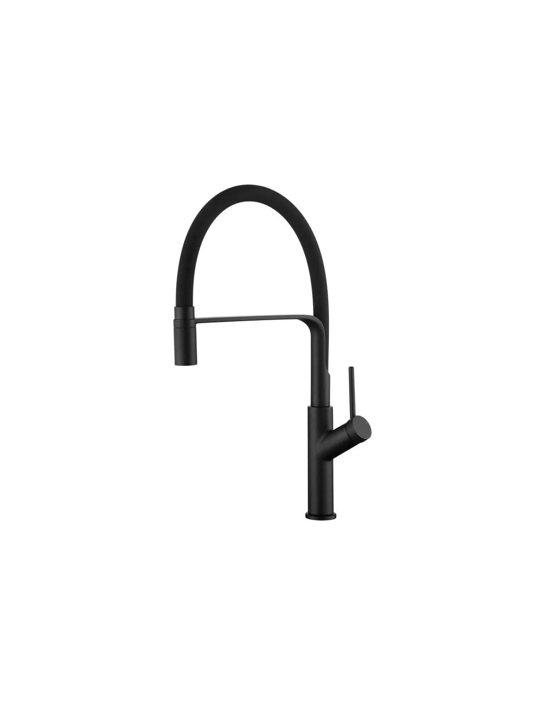 Sanitshop propose Ce produit qui  appartient à la catégorie Robinetterie de cuisine (robinets pour éviers): éco-efficace (avec régulateur de débit, avec arrêt automatique pour économiser l\'eau), avec douchette (avec pommeau de douche), de couleur noire, de couleur dorée, de rebord, à bec haut , mitigeur (monobloc), en laiton, de style moderne.