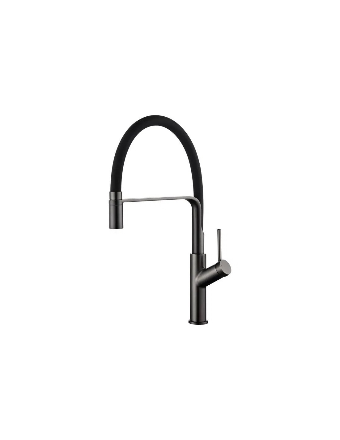 • Corps du robinet en laiton avec finition or brossé et bec flexible noir mat.