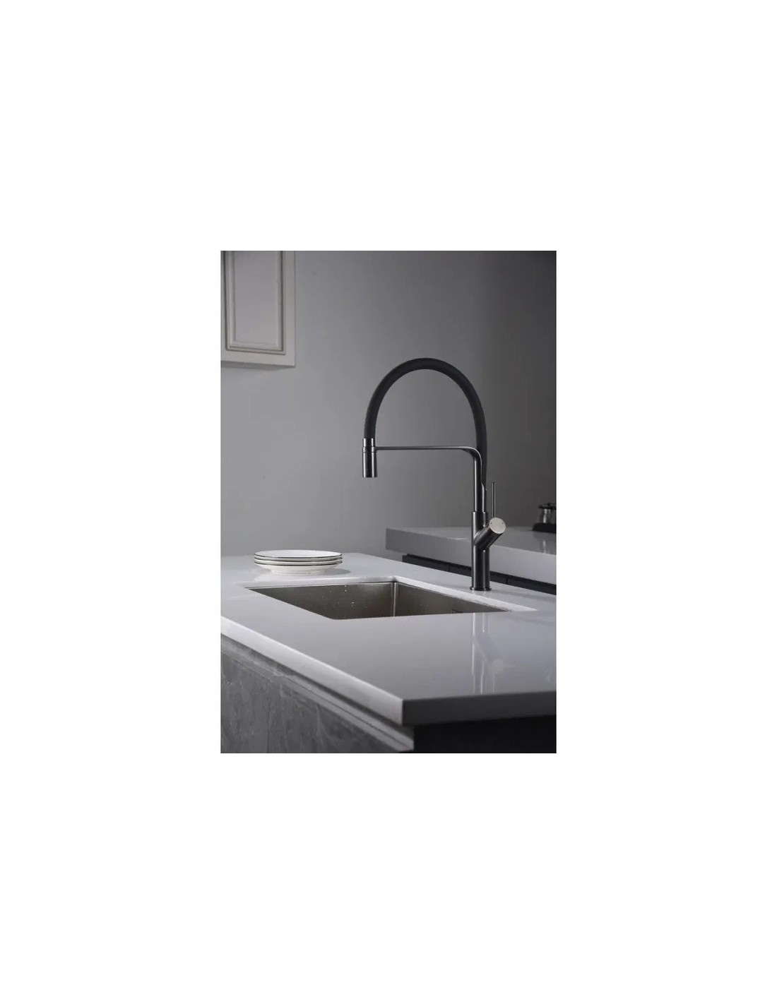 • Tuyaux (flexibles) inclus et longueur de 50 cm, qui grâce à leur flexibilité offrent une grande facilité pour éviter des problèmes avec les mesures et le design de la cuisine.