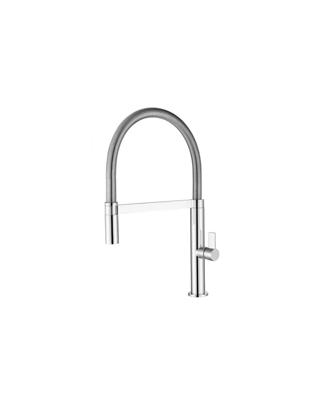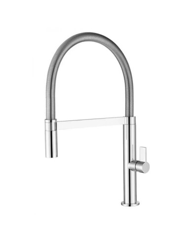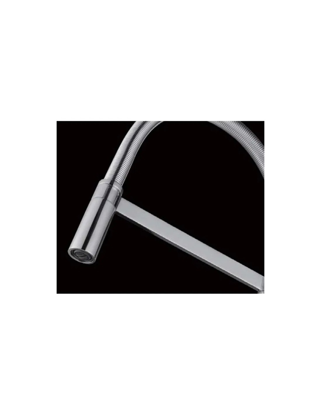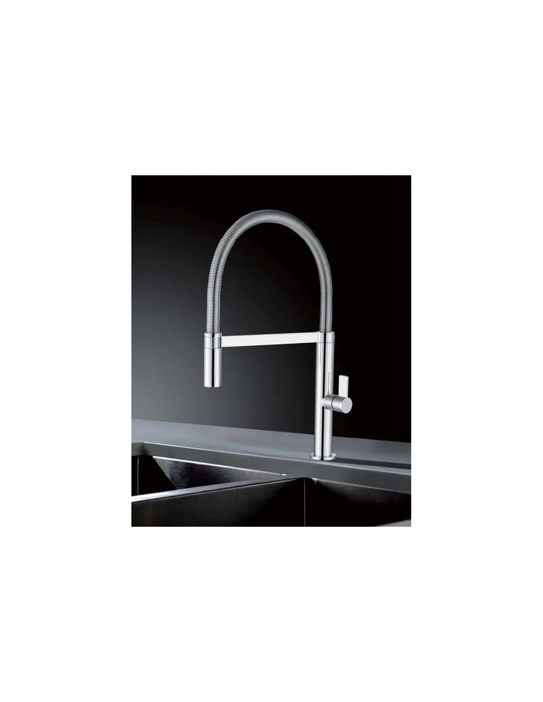 Sanitshop propose Ce produit  qui appartient à la catégorie Robinetterie de cuisine (robinets pour éviers): éco-efficace (avec régulateur de débit, avec arrêt automatique pour économiser l\'eau), avec douchette (avec pommeau de douche), avec bec amovible (extensible, avec flexible), avec bec pivotant, de couleur chromée, de rebord, à bec haut , mitigeur (monobloc), en laiton, de style moderne.