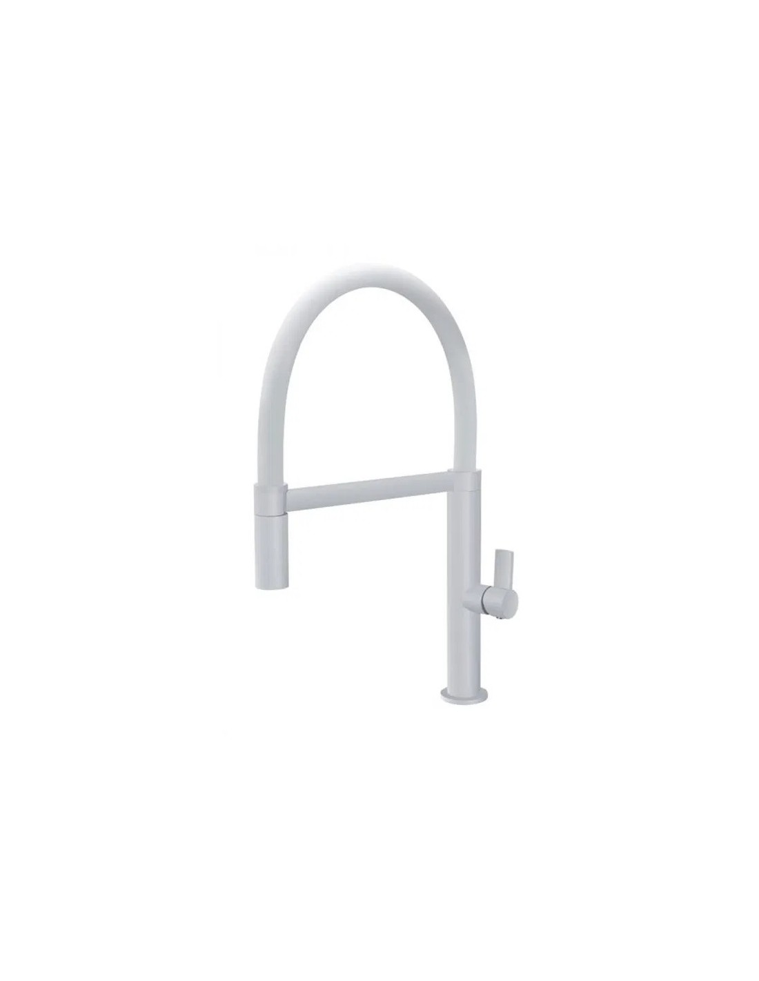 Sanitshop propose Ce produit  qui appartient à la catégorie Robinetterie de cuisine (robinets pour éviers): éco-efficace (avec régulateur de débit, avec arrêt automatique pour économiser l\'eau), avec douchette (avec pommeau de douche), avec bec amovible (extensible, avec flexible), avec bec pivotant, de couleur chromée, de rebord, à bec haut , mitigeur (monobloc), en laiton, de style moderne.