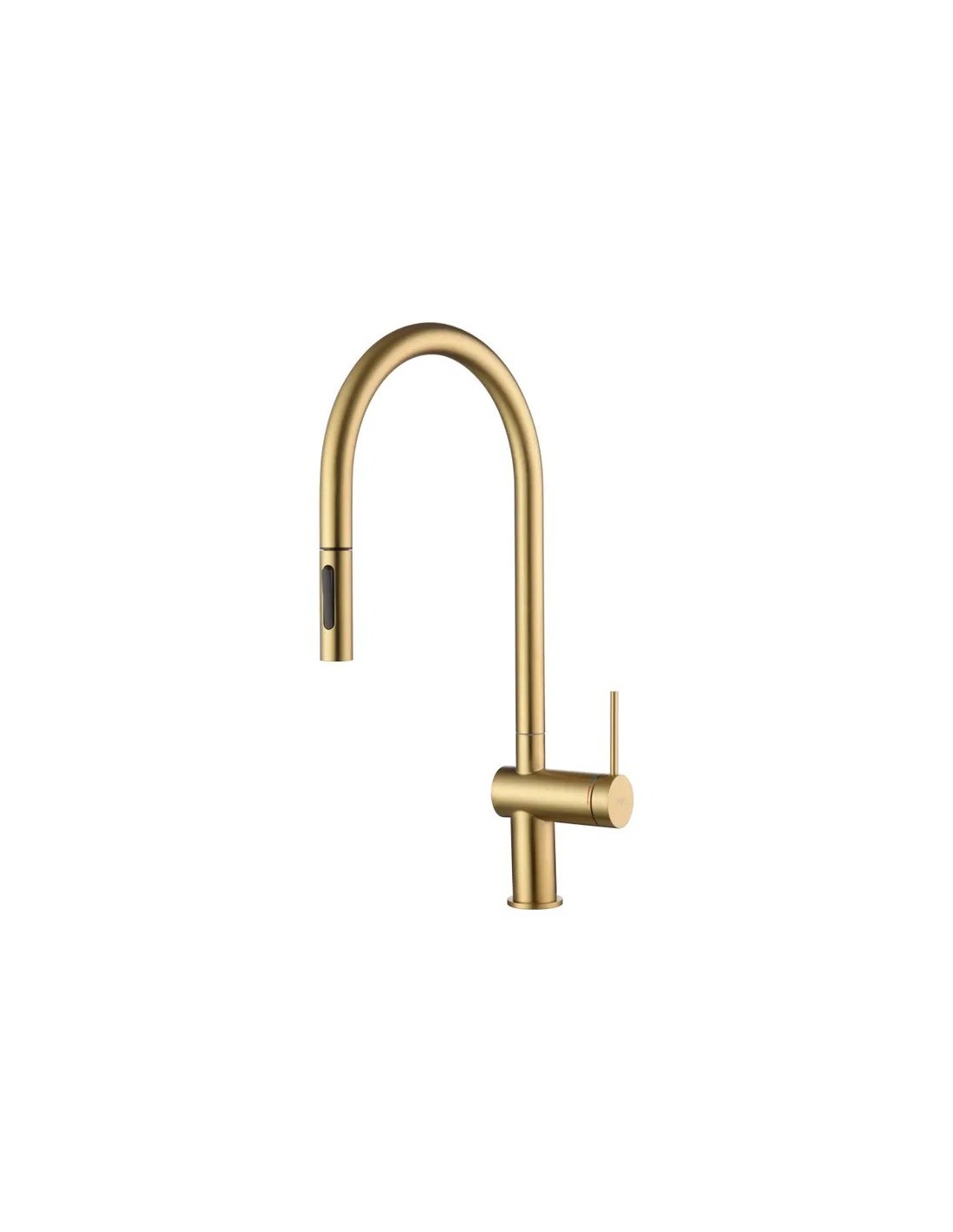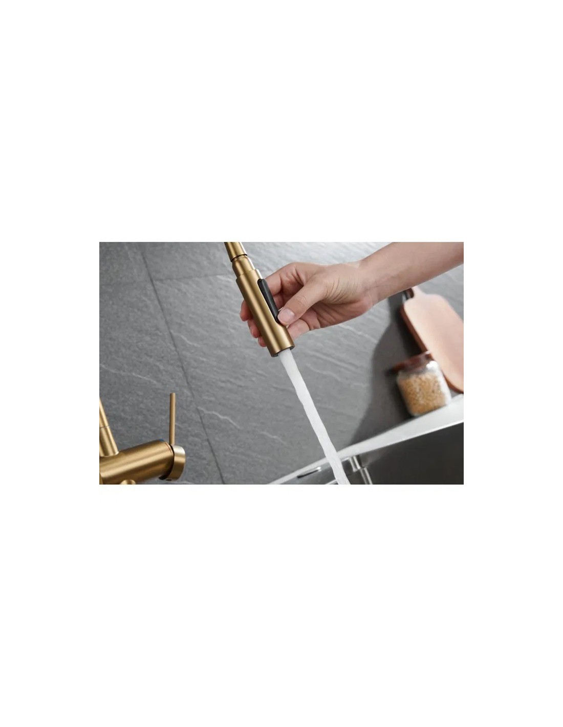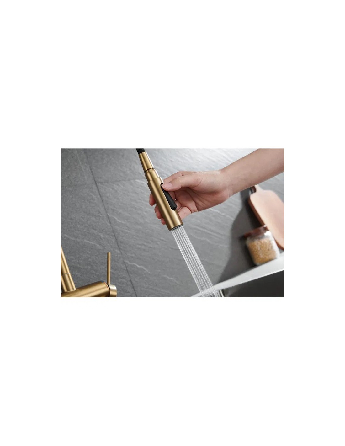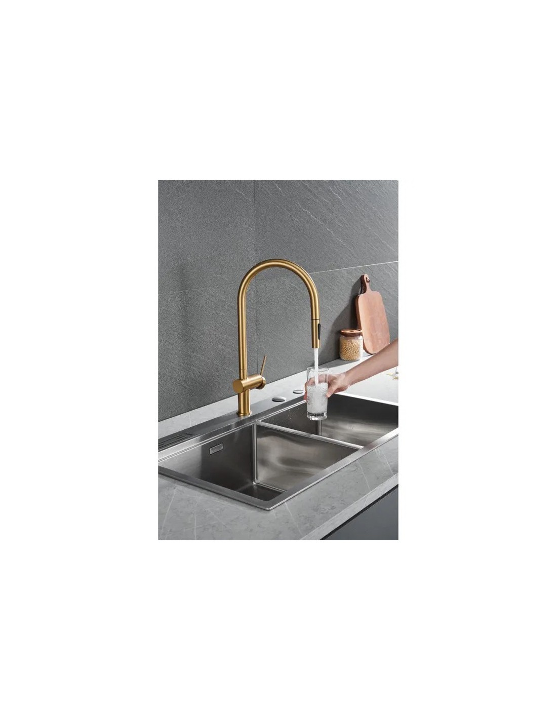 Sanitshop propose Ce produit qui  appartient à la catégorie Robinetterie de cuisine (robinets pour éviers): éco-efficace (avec régulateur de débit, avec arrêt automatique pour économiser l\'eau), avec douchette (avec pommeau de douche), avec bec amovible (extensible, avec flexible), avec bec pivotant, de couleur chromée, de rebord, à bec haut , mitigeur (monobloc), en laiton, de style moderne.