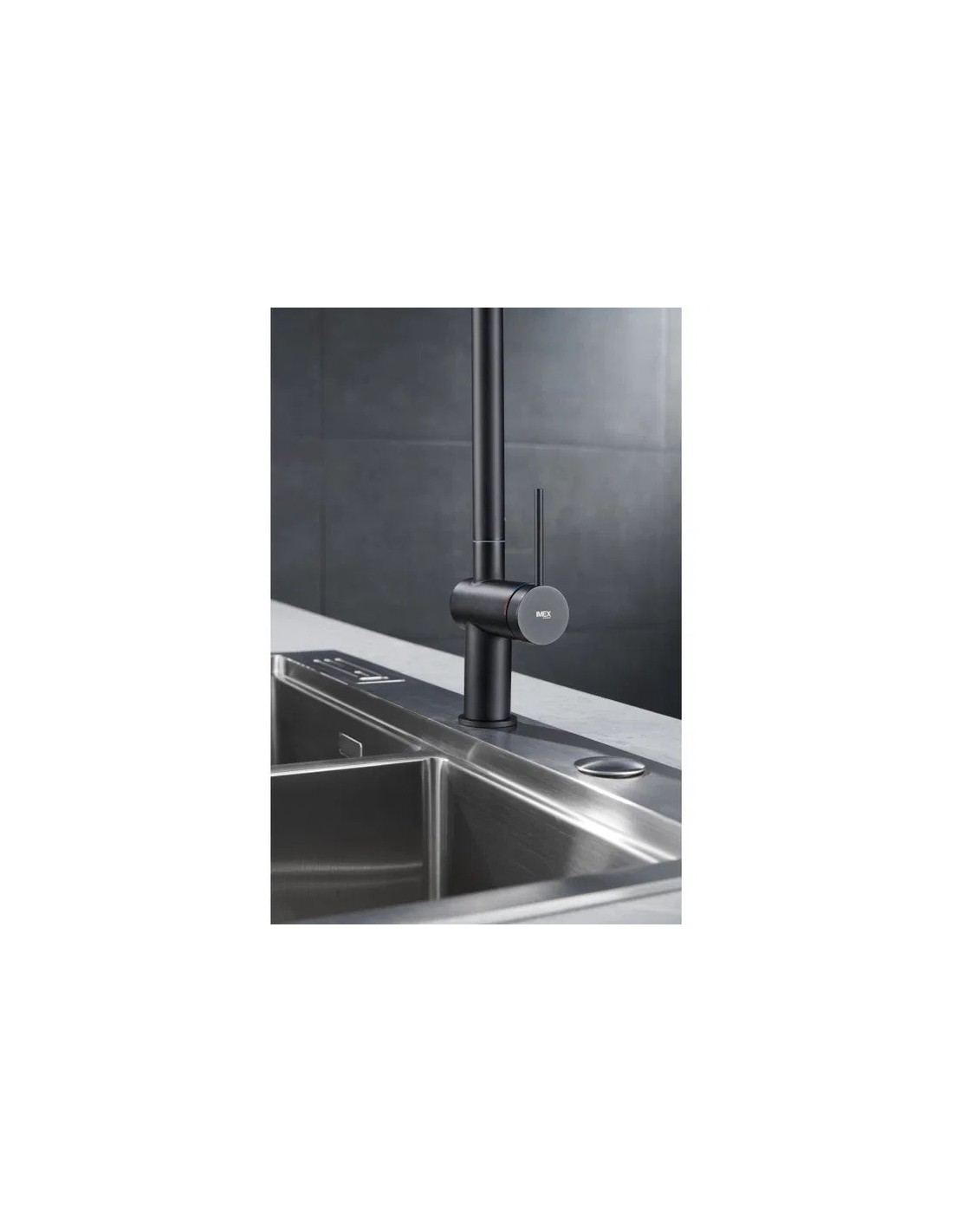 • Robinet mitigeur de cuisine à bec haut de la ligne Berne d'Imex.