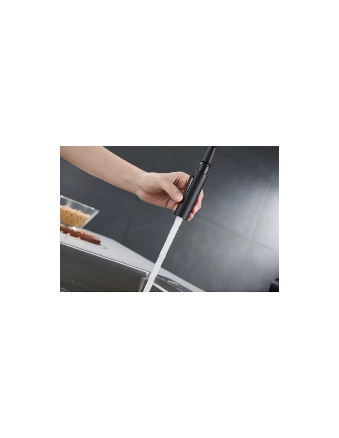 • Ressort résistant avec une bonne mobilité et extrémité du bec amovible pour obtenir un tuyau avec douchette permettant d'atteindre n'importe quelle partie des bacs.