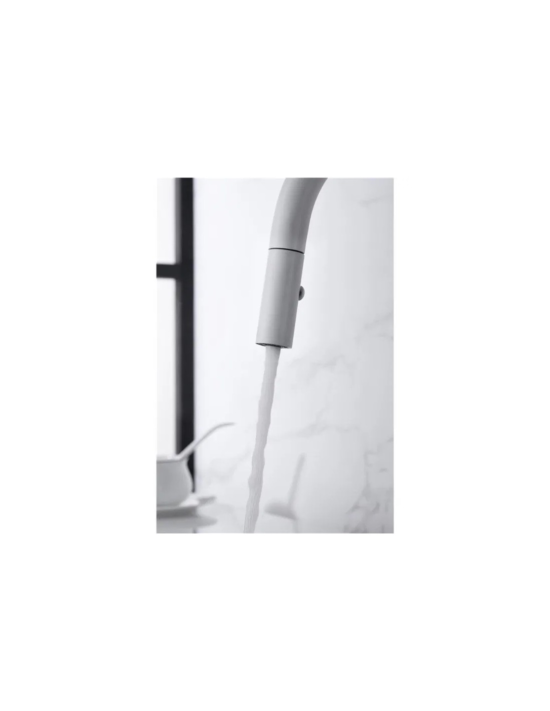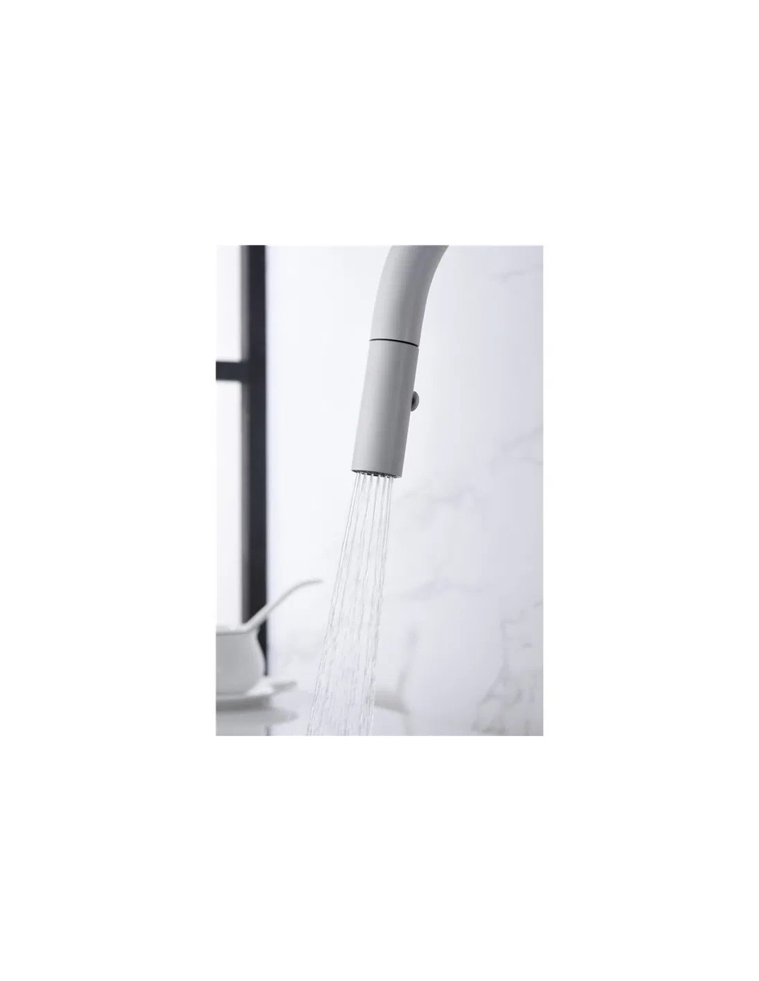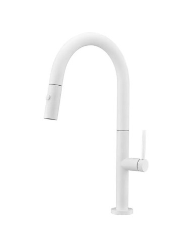 • La partie extrême du bec peut être retirée pour pouvoir utiliser la douchette et atteindre n'importe quelle partie de l'évier. On l'active en appuyant sur le bouton qui s'y trouve pour sélectionner la fonction de sortie mode jet ou mode pluie.
