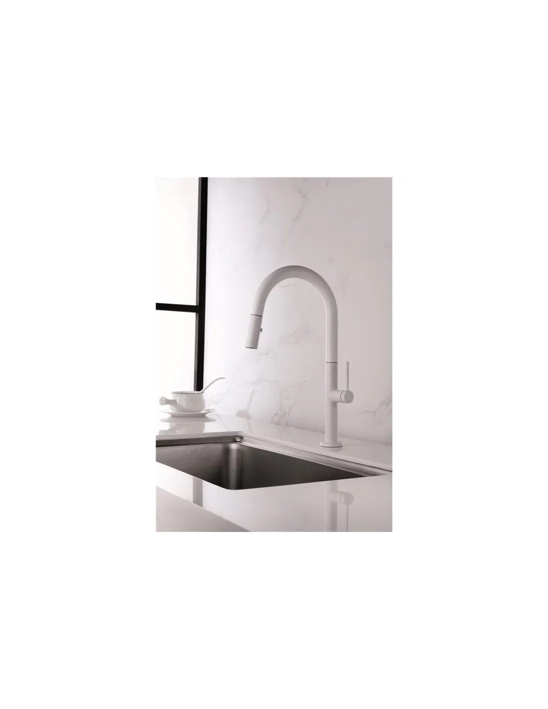 • Robinet mitigeur de cuisine avec bec très haut, fabriqué en laiton.