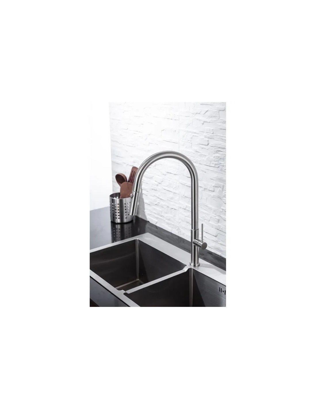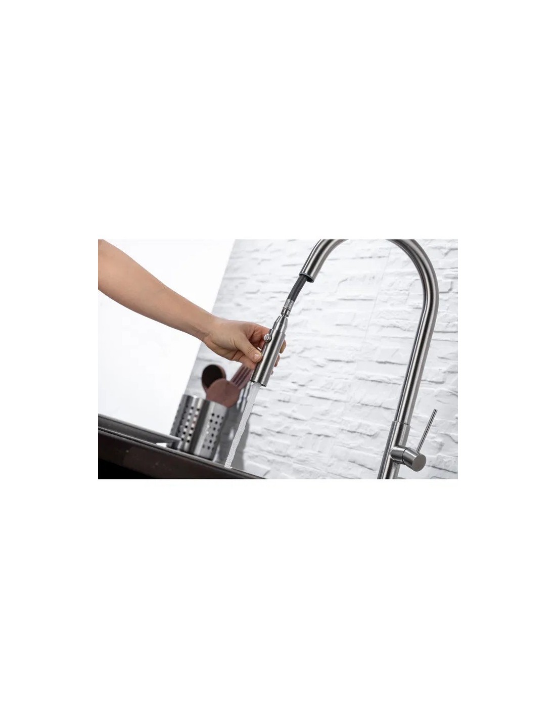 Sanitshop propose Ce produit qui  appartient à la catégorie Robinetterie de cuisine (robinets pour éviers): éco-efficace (avec régulateur de débit, avec arrêt automatique pour économiser l\'eau), avec bec amovible (extensible, avec flexible), avec bec pivotant, en couleurs, de rebord, à bec haut , mitigeur (monobloc), en acier inoxydable, de style moderne.
