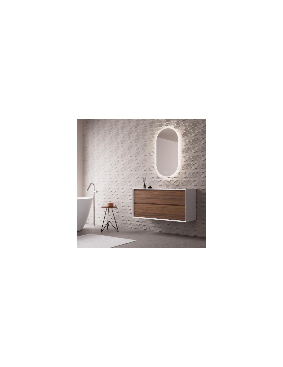MEUBLE VASQUE SUSPENDU BLANC MAT ET NOYER 2 TIROIRS COLLECTION- COOL-NOFER
