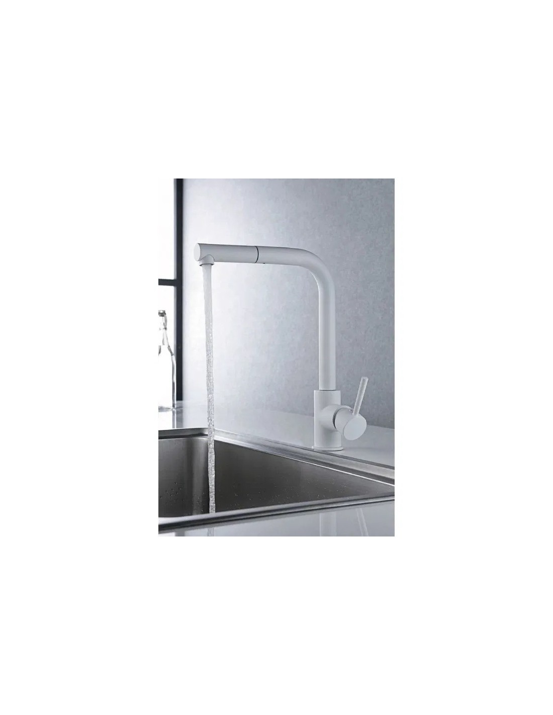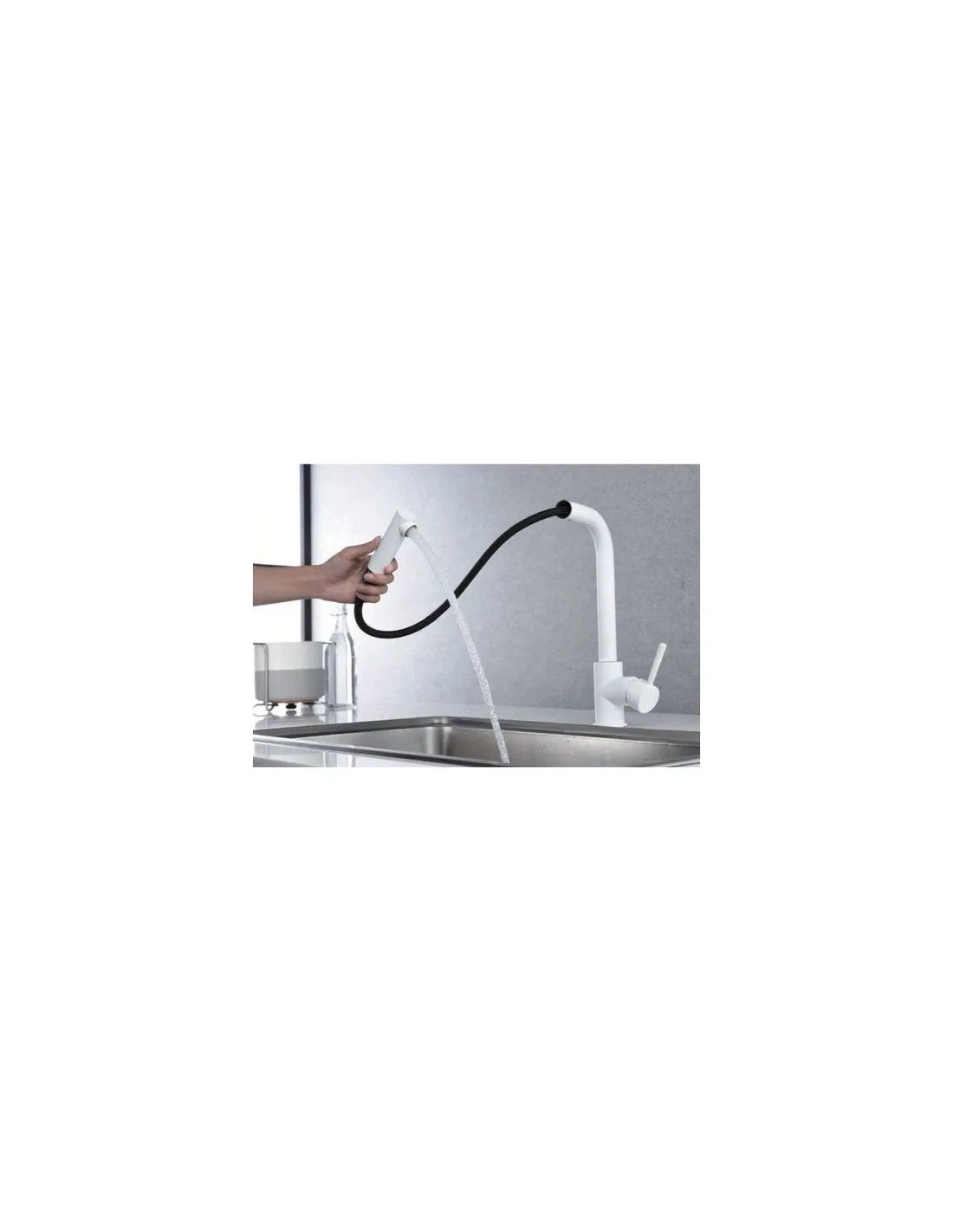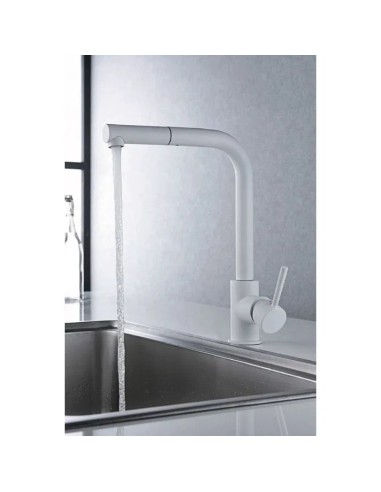 • Possède un ressort résistant avec une grande mobilité. Possibilité d'extraire la partie finale du bec pour utiliser le tuyau avec douchette, qui apportera une liberté pour pouvoir atteindre n'importe quelle partie du bac.