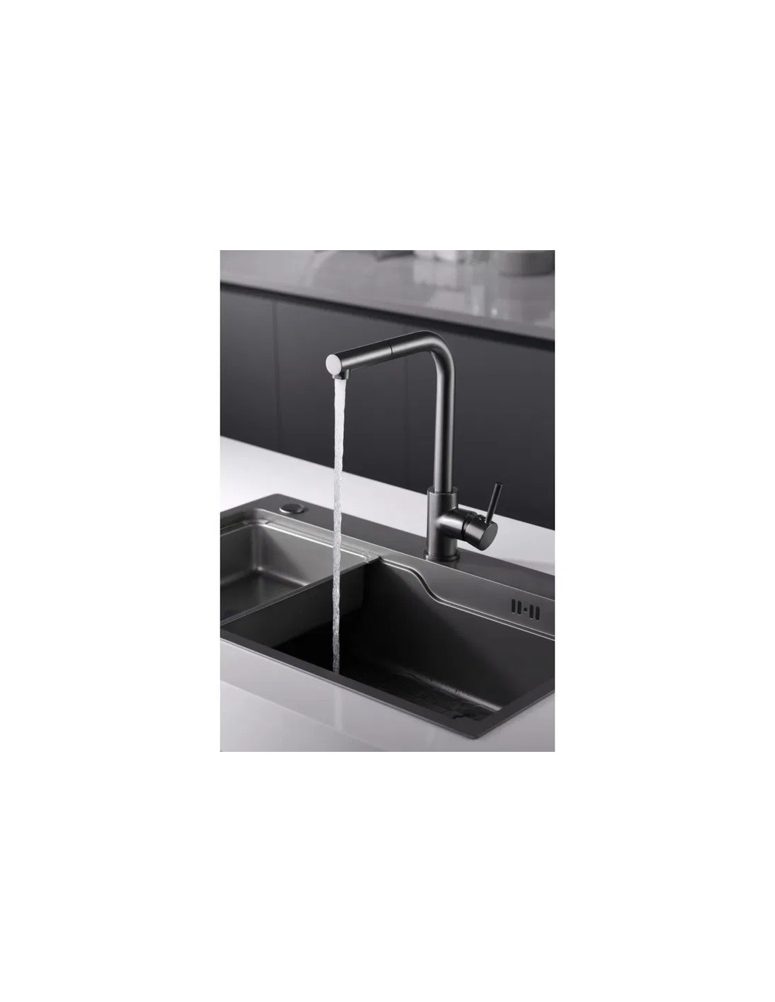 • Idéal pour une utilisation dans de grands bacs ou double bac et est très utile pour nettoyer la vaisselle et remplir facilement l'évier.