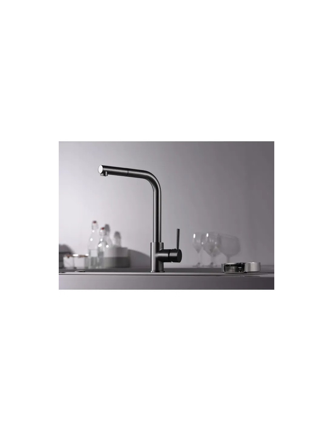 • Possède un ressort résistant avec une grande mobilité. Possibilité d'extraire la partie finale du bec pour utiliser le tuyau avec douchette, qui apportera une liberté pour pouvoir atteindre n'importe quelle partie du bac.
