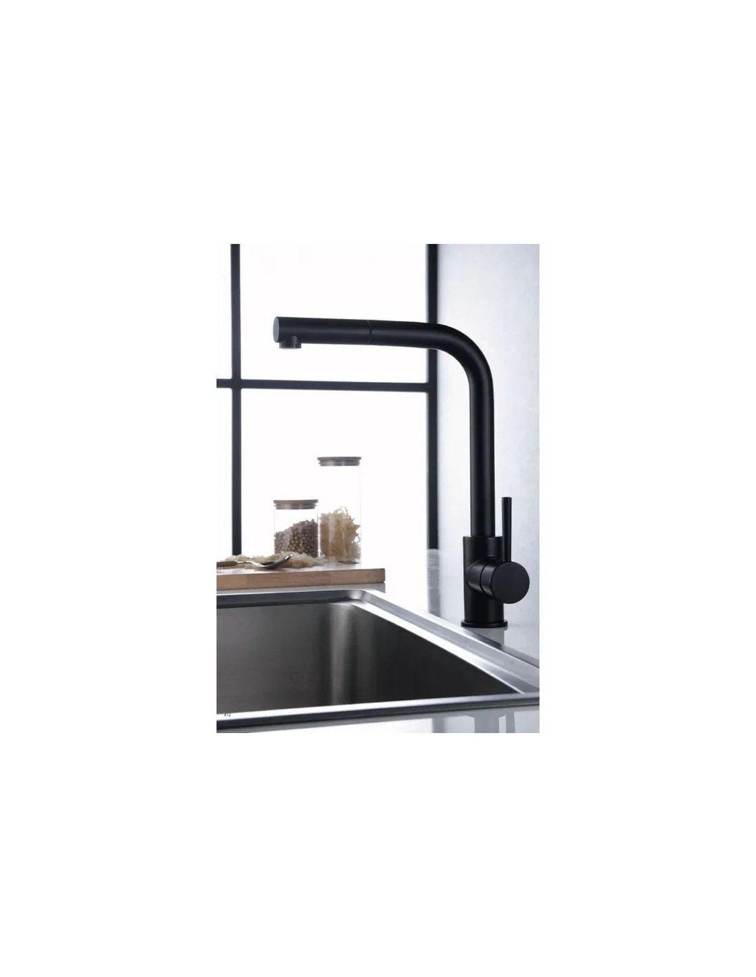 • Possède un ressort résistant avec une grande mobilité. Possibilité d'extraire la partie finale du bec pour utiliser le tuyau avec douchette, qui apportera une liberté pour pouvoir atteindre n'importe quelle partie du bac.