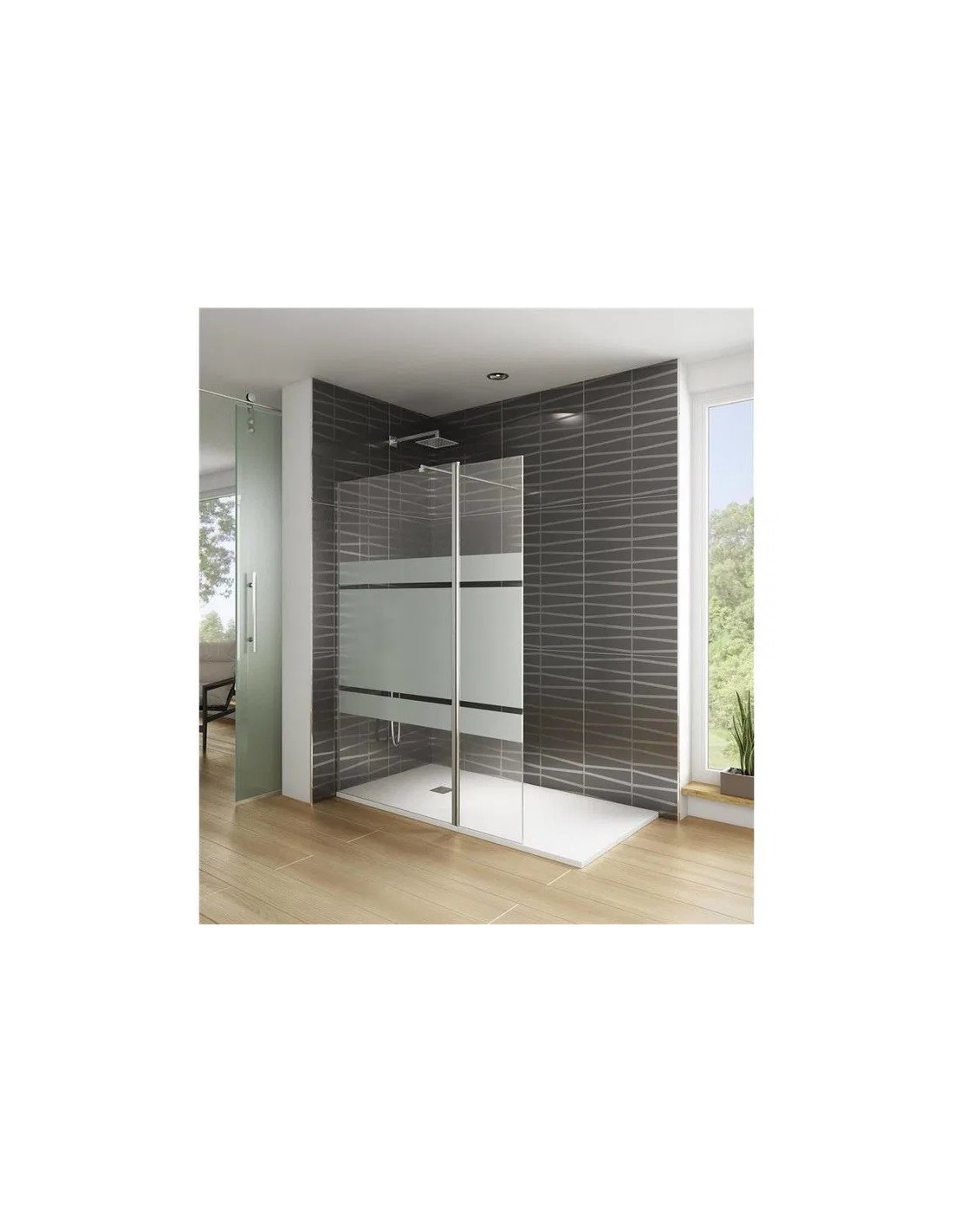 Sanitshop propose ce produit qui appartient à la catégorie Parois de douche: fixes (Walk In), rabattables, frontale, en verre, de 2 feuilles, sans profilé inférieur, sans profilé supérieur, pour les receveurs de douche rectangulaire, de 90 à 99 cm de long, de 100 à 109 cm de long, de 110 à 119 cm de long, de 120 à 129 cm de long, de 130 à 139 cm de long, de 140 à 149 cm de long, de 150 à 159 cm de long, avec décoration , avec profilés en acier inoxydable, avec traitement anti-calcaire, d' 1 porte, avec profilés de couleur argent, de 8 mm d'épaisseur.