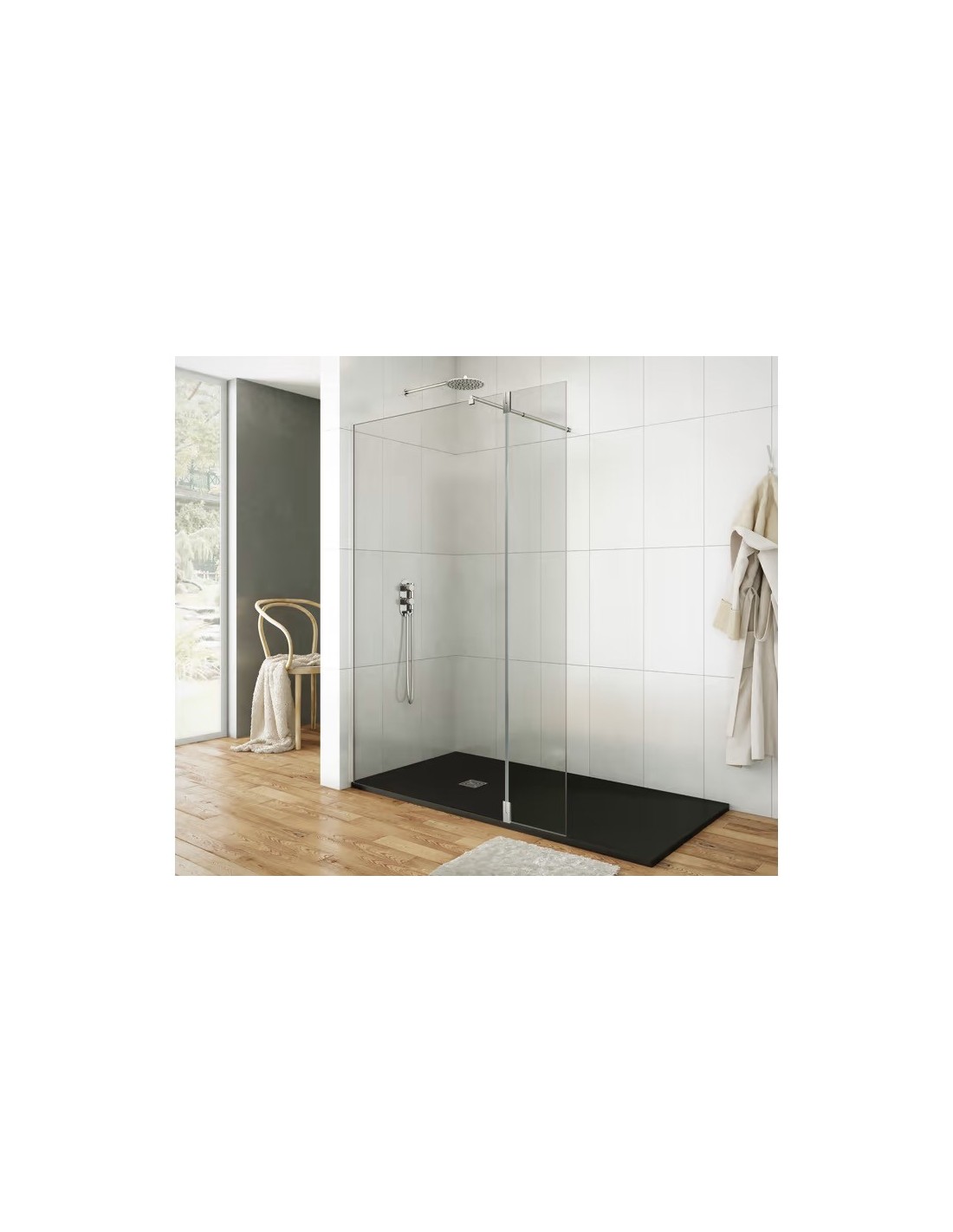 • Comprend 1 paroi frontale de 2 feuilles : 1 feuille fixe + 1 feuille rabattable (walk-in).