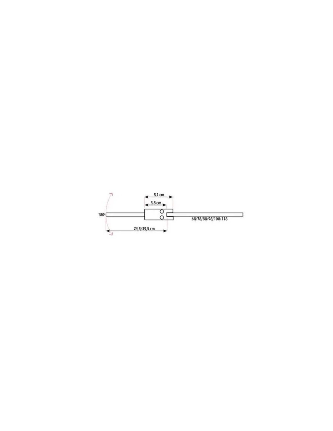 • Barre support murale pivotante 120 cm (90°/45°) : barre carrée avec support contre la paroi et contre le mur. Les 2 supports sont pivotants pour s'adapter à tous les angles. Il est possible de couper la barre à la longueur souhaitée.