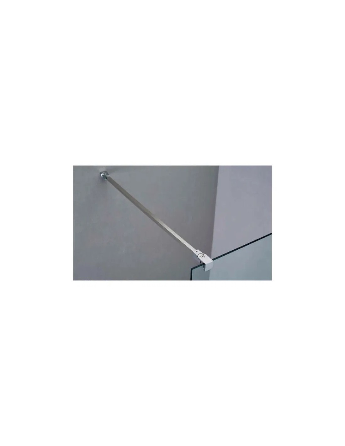 • Barre 140 cm avec support : barre carrée avec un support mural et un 1 support contre la paroi. Il est possible de couper la barre à la longueur souhaitée. La paroi rabattable ne pourra pas pivoter vers l'intérieur avec cette barre.