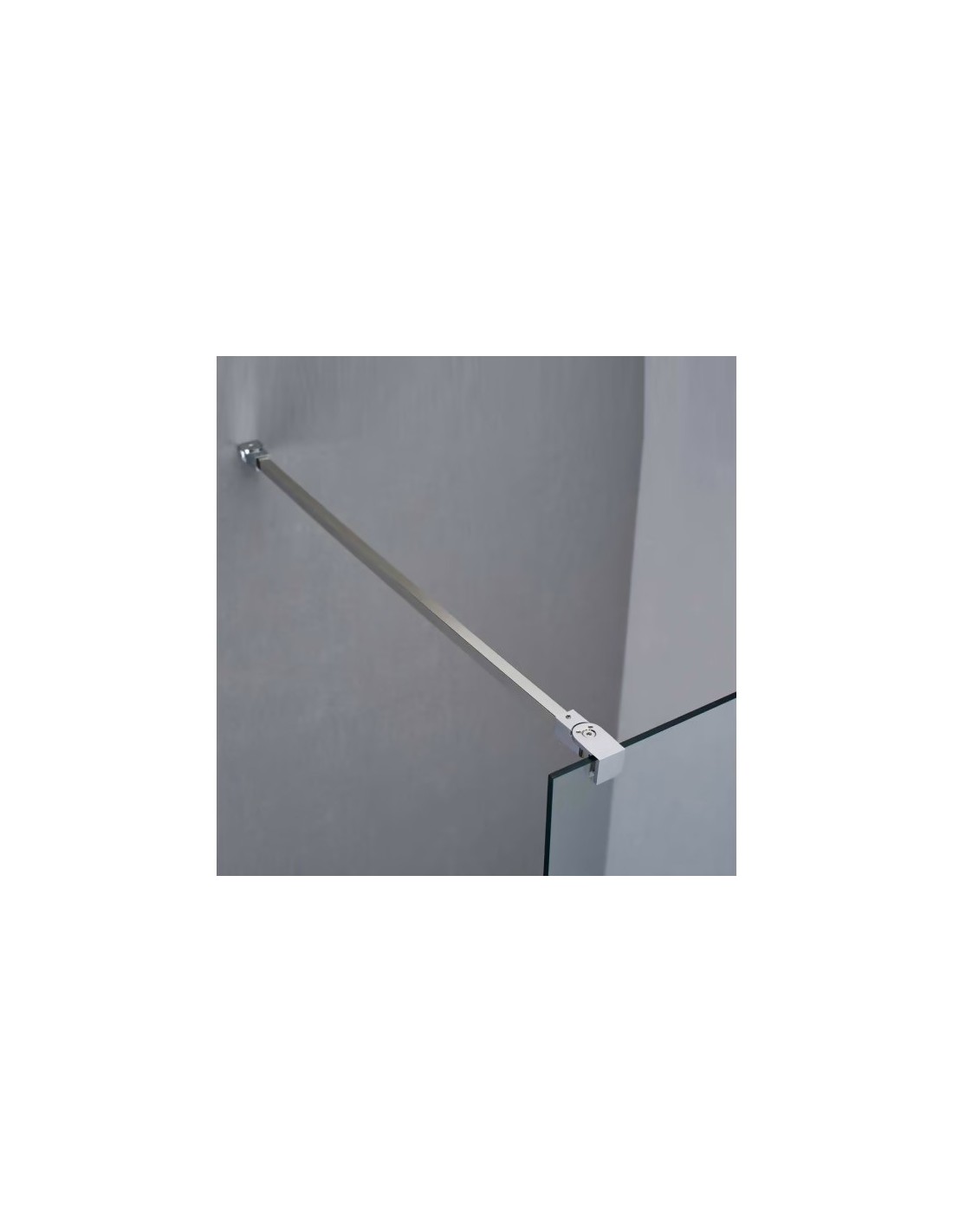 - Barre 140 cm avec support : barre carrée avec un support mural et un 1 support contre la paroi. Il est possible de couper la barre à la longueur souhaitée. La paroi rabattable ne pourra pas pivoter vers l'intérieur avec cette barre.