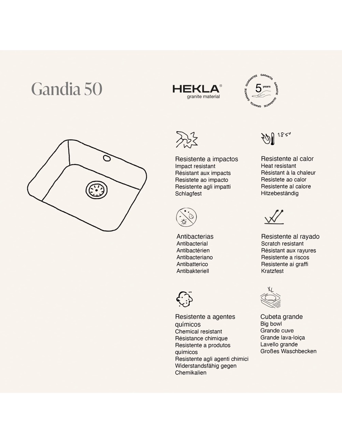 EVIER DE CUISINE 1 BAC GANDIA 50 COLLECTION POALGI