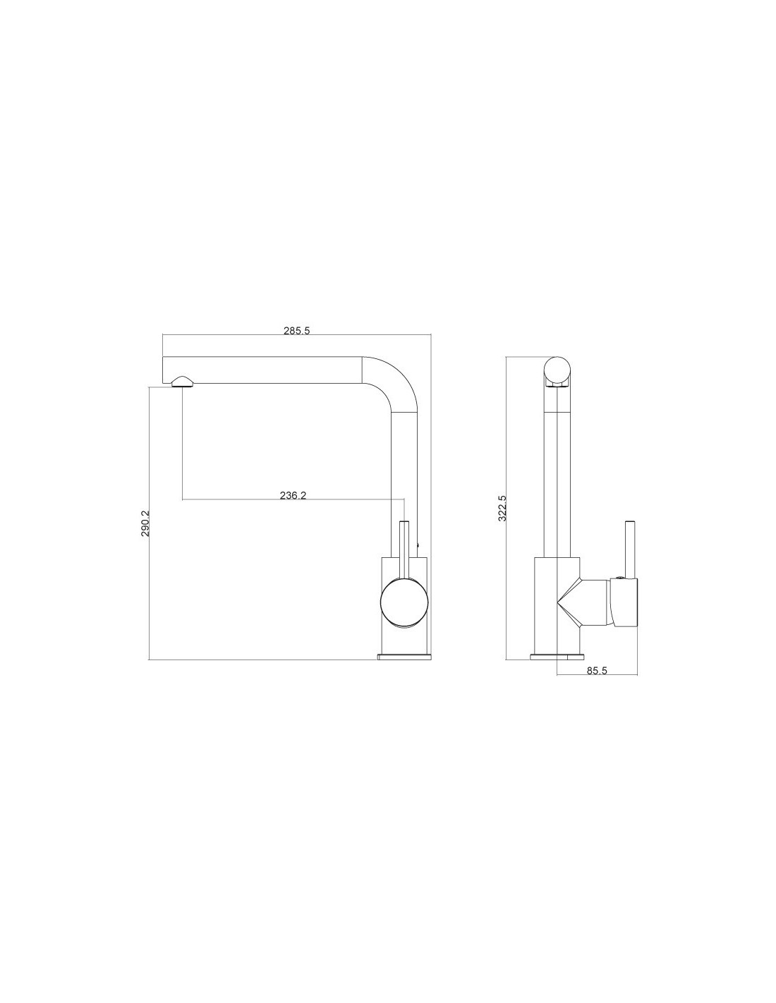 - Robinet mitigeur de cuisine avec bec haut.