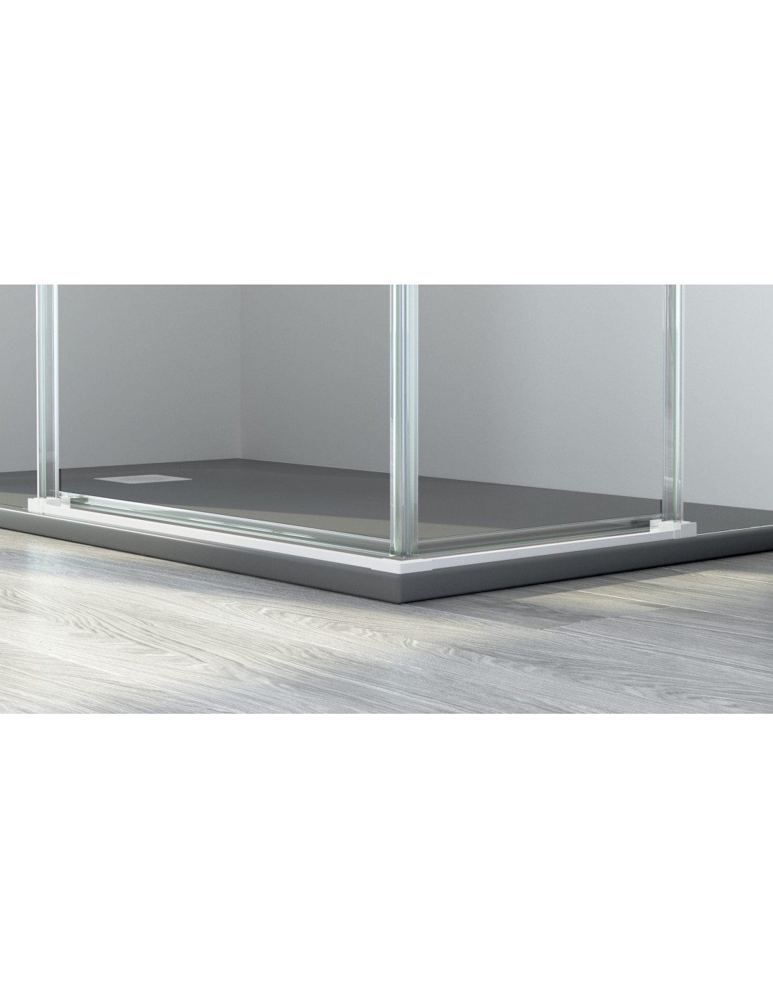 - Absence de profilé sur la zone inférieure du pare-douche. Il faudra donc installer un joint en caoutchouc sur la partie inférieure de la porte coulissante et un joint métallique sur le receveur de douche (0,8 cm de haut x 1,2 cm de large). Ces 2 éléments sont inclus avec le pare-douche.