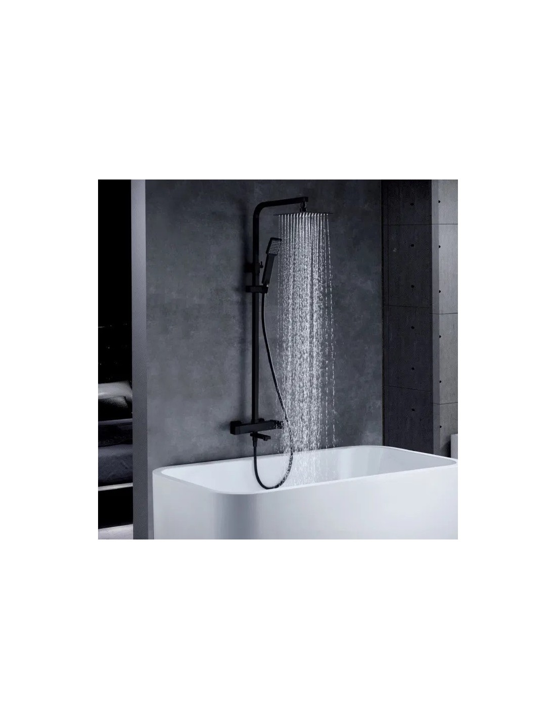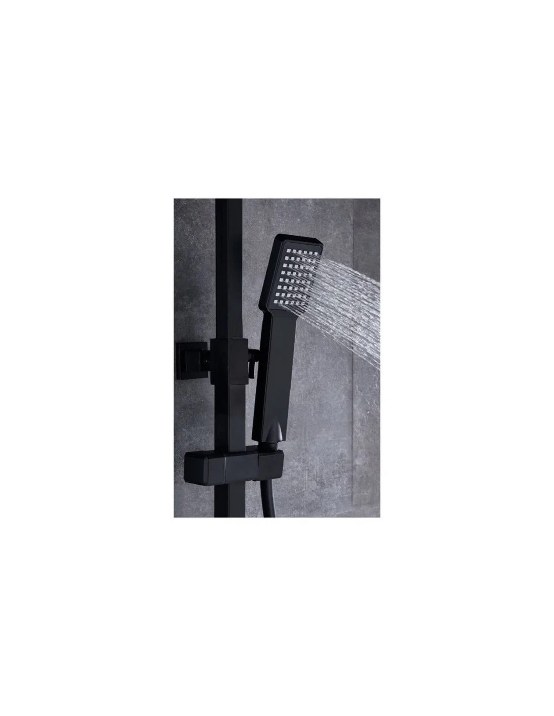 - Pommeau de douche carré, de couleur noir mat. Robinetterie en laiton noir.