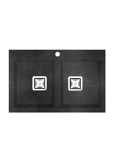 Sanitshop propose ce produit  qui appartient à la catégorie Éviers de cuisine: en granit, encastrés sur le plan, de 71 à 90 cm (centimètres) de long, en couleurs, double, 2 bacs (cuve, vasque), de style moderne, de forme carrée.